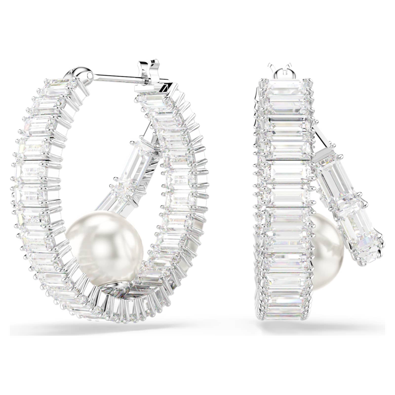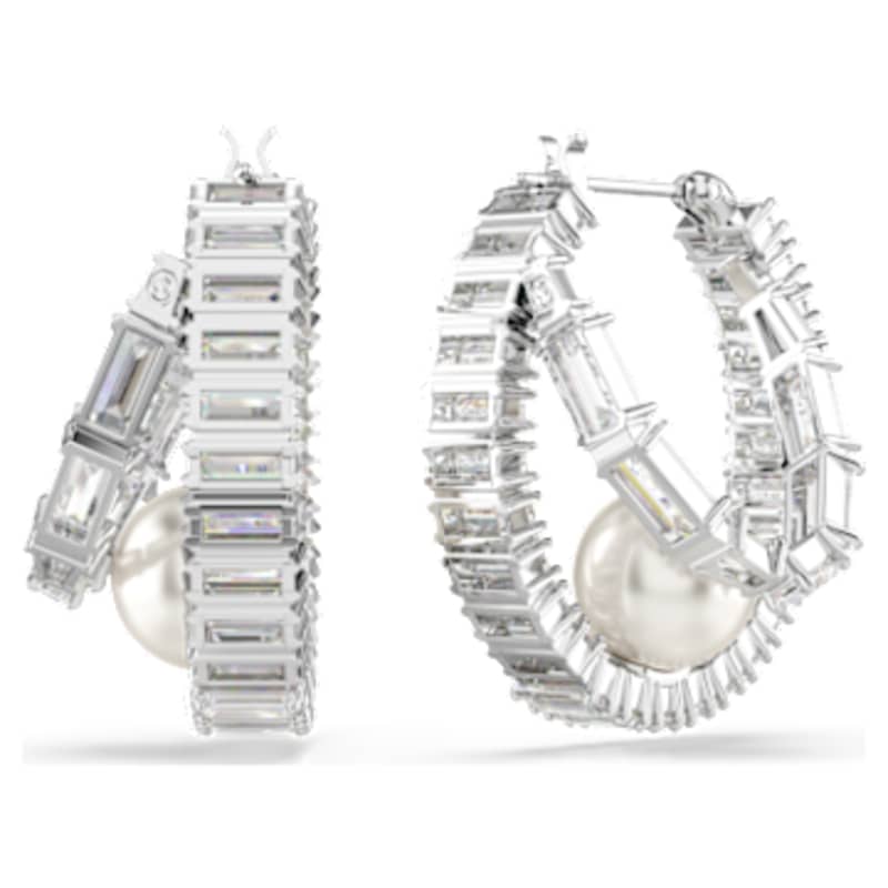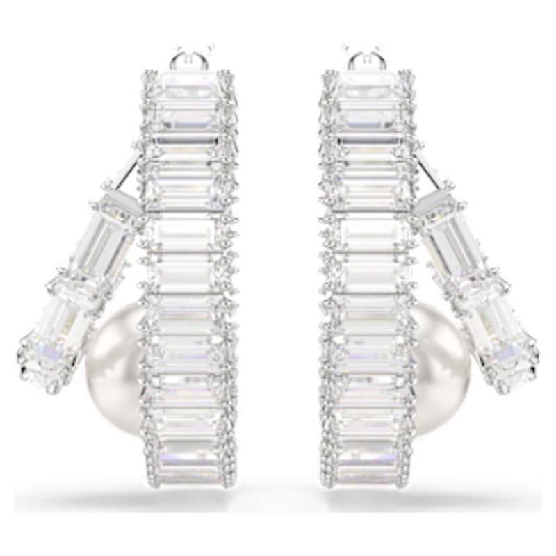 Apportez une touche moderne aux créoles classiques. Ces boucles d’oreilles percées lumineuses sont réalisées en métal rhodié et entièrement serties de Swarovski Zirconia taille baguette. Une unique Crystal Pearl de Swarovski est ensuite disposée à la base de chaque créole pour ajouter une touche de luxe ultime. Associez ces boucles d’oreilles à d’autres bijoux assortis pour créer vos propres combinaisons expressives.