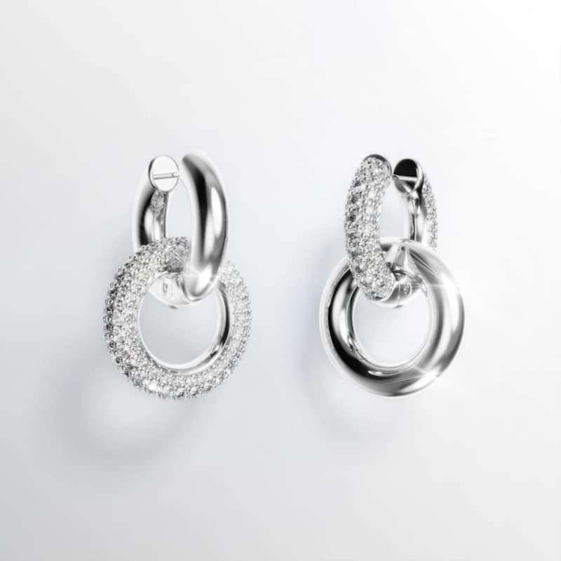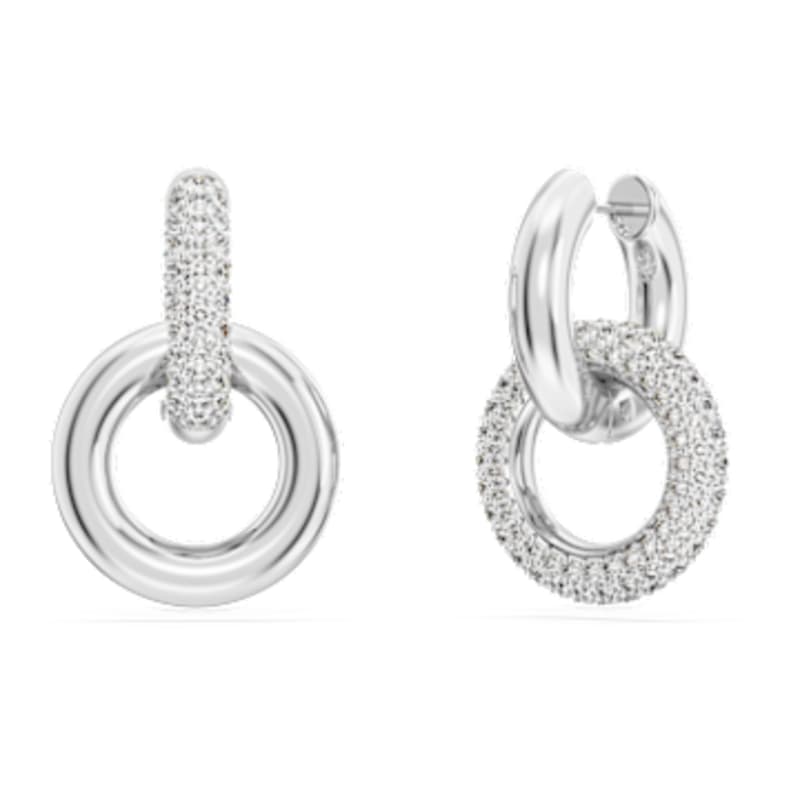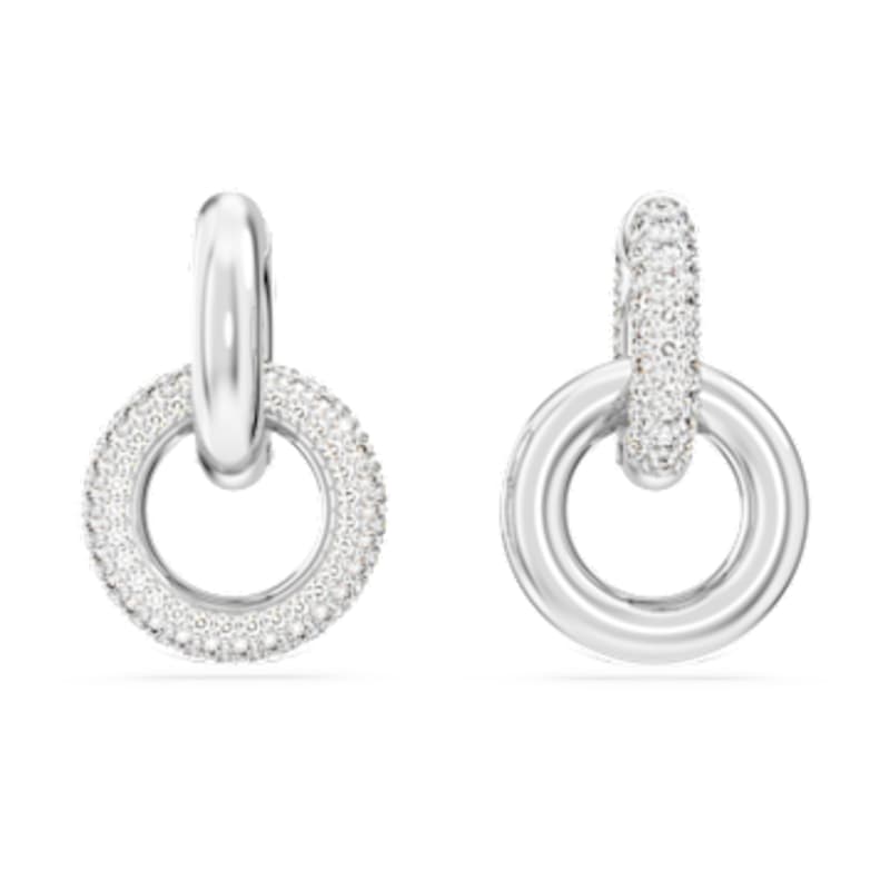 Ces créoles entrelacées Dextera sont dotées de deux anneaux tubulaires en métal rhodié, dont l’une est intégralement pavée. Pour ajouter une touche asymétrique, le positionnement des anneaux est différent sur chaque pièce, vous pouvez alors détacher à l’envie le deuxième anneau pour créer un style différent avec une seule créole.