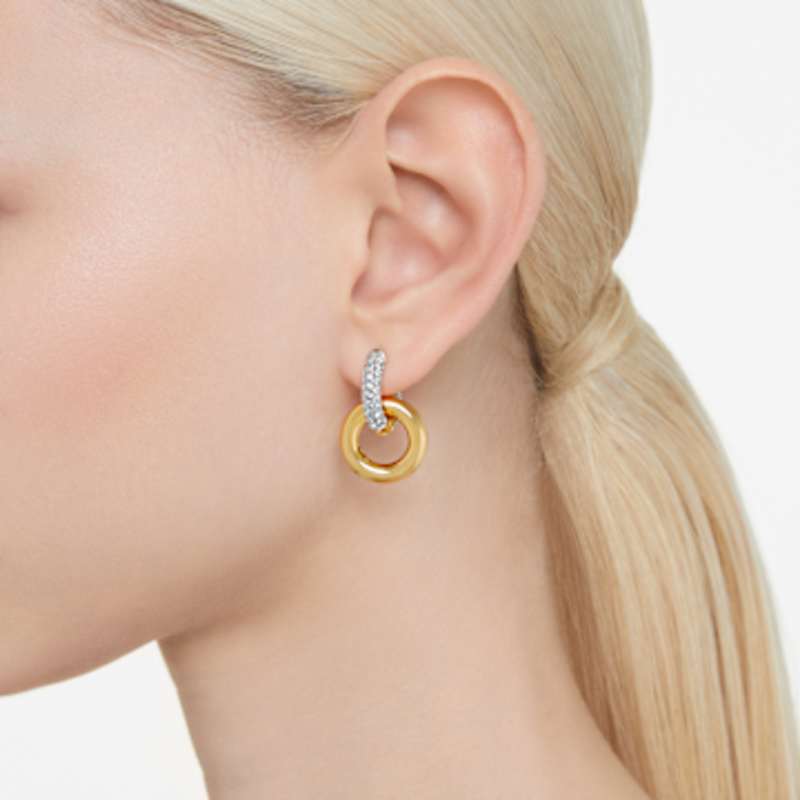 Ces créoles entrelacées Dextera sont dotées de deux anneaux tubulaires en placage de ton or, dont l’une est intégralement pavée. Pour ajouter une touche asymétrique, le positionnement des anneaux est différent sur chaque pièce, vous pouvez alors détacher à l’envie le deuxième anneau pour créer un style différent avec une seule créole.