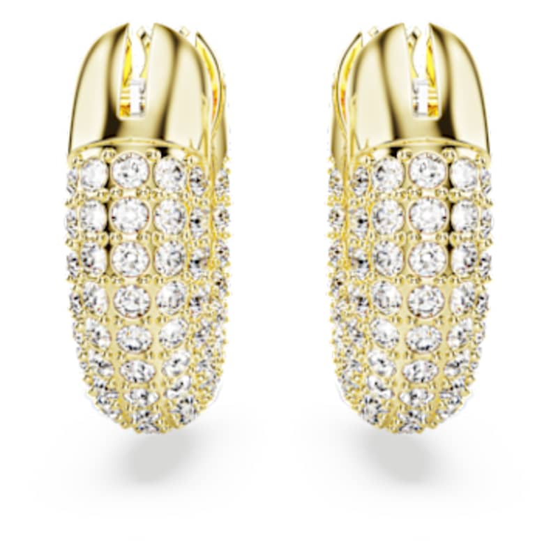 Interprétation moderne des créoles classiques, ce bijou non genré dynamise toutes les tenues. Son design sculptural est un hommage à la technique emblématique du pavage de Swarovski réalisé avec des cristaux étincelants appliqué sur une fine structure en métal doré rose. Ce duo n’est pas réservé aux journées, il étincelle tout autant la nuit tombée. Ces boucles d’oreilles font partie de la famille Dextera et ont été pensées pour la Collection III.