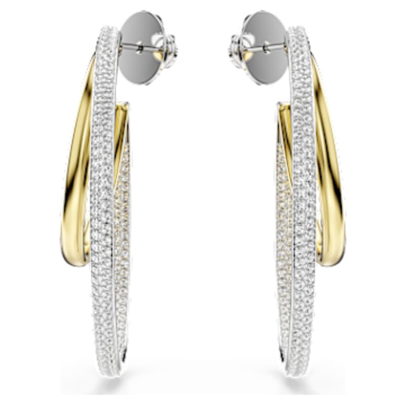 Avec de multiples finitions en métal, ces boucles d’oreilles percées Hyperbola sont naturellement impressionnantes. Chaque côté présente une petite créole au placage de ton or à l’intérieur d’une grande créole en métal rhodié, elle-même ornée de Swarovski Zirconia incolores. Un design ouvert fascinant qui sublimera votre quotidien d’une élégante touche de lumière.