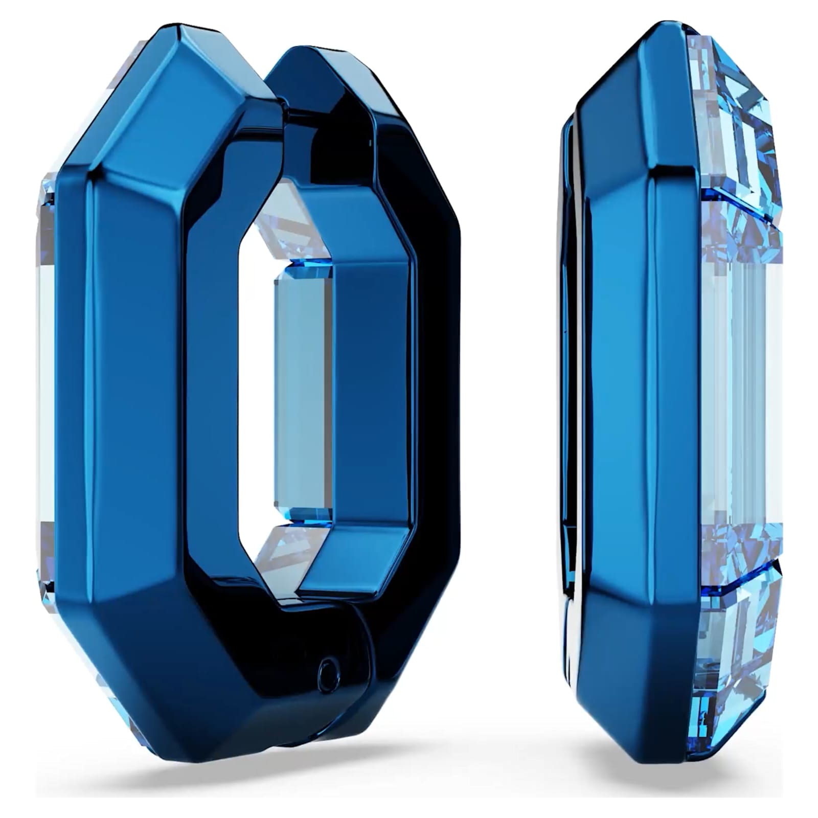 Ces mini-créoles bleues sont un exemple exquis de la maîtrise exceptionnelle de la couleur de Swarovski. Chaque créole cristallisée présente un fermoir à tige discret avec un mécanisme à charnière pour une ouverture facile. Une pièce graphique saisissante, avec un esprit sport mais définitivement luxe.