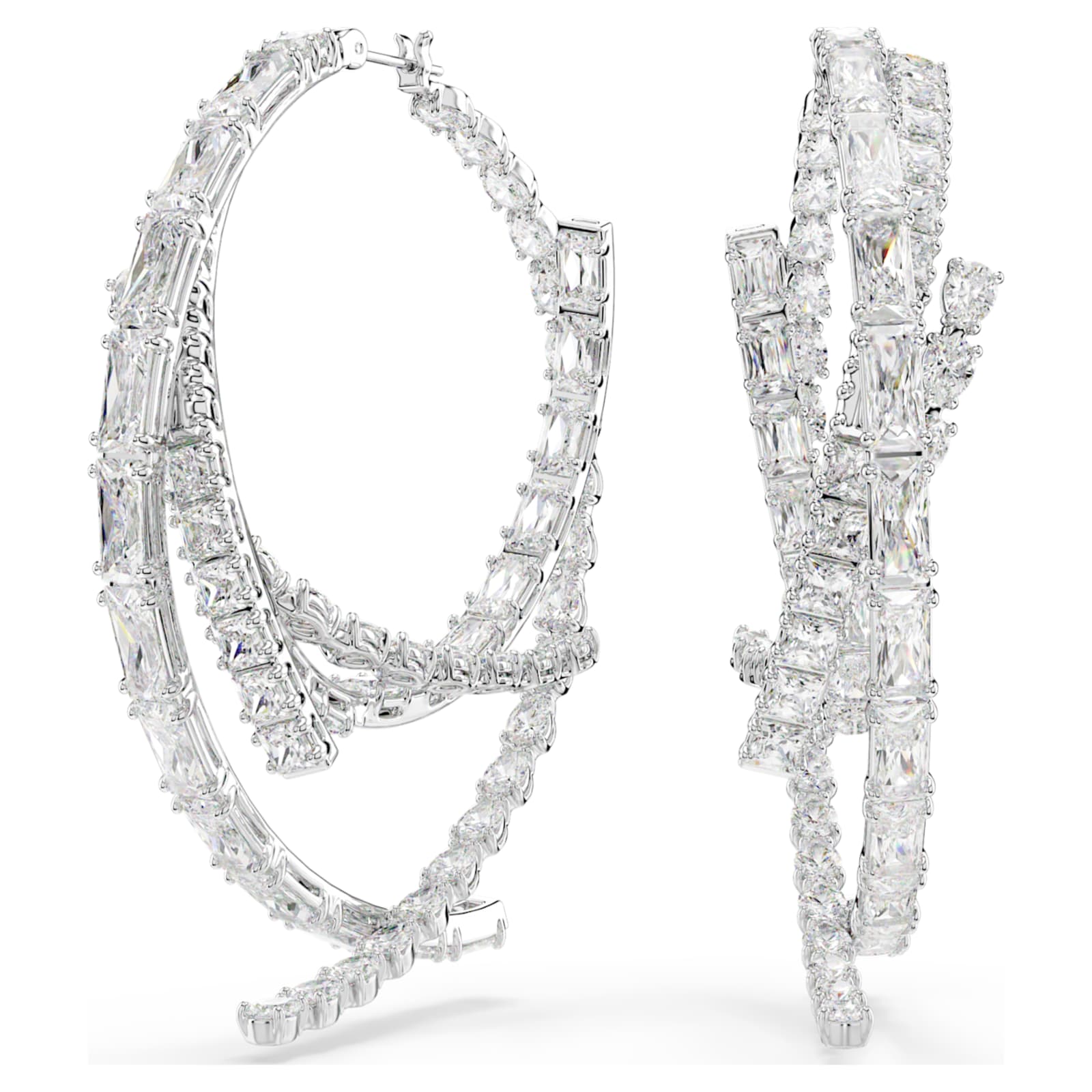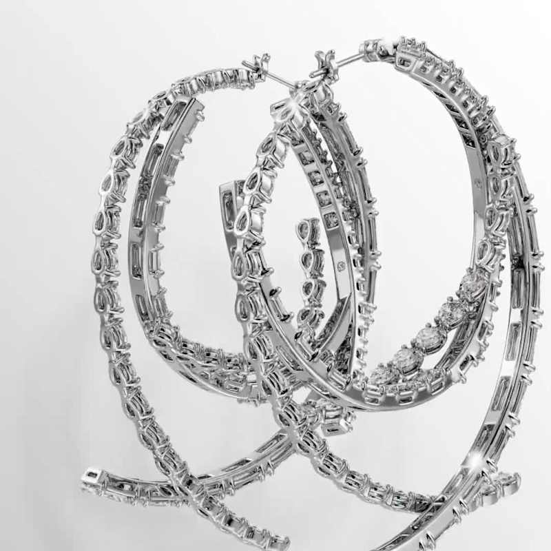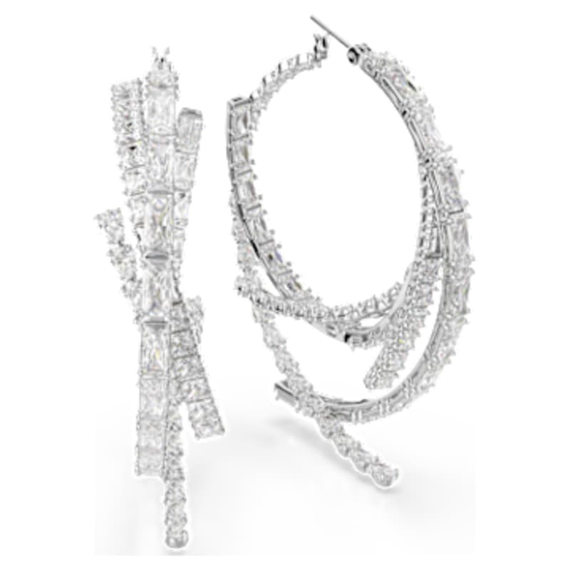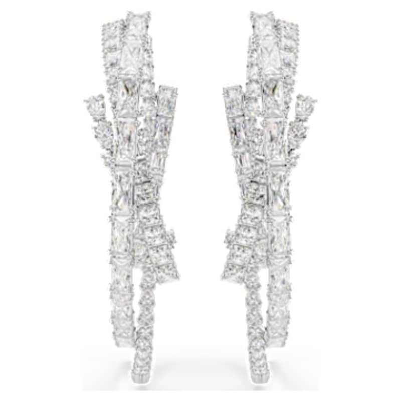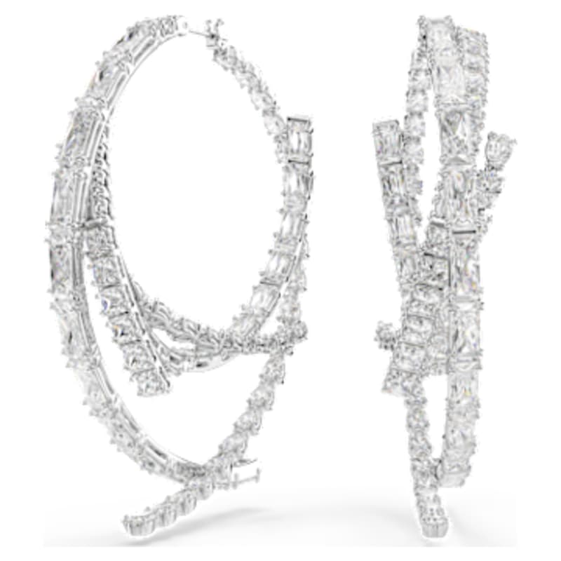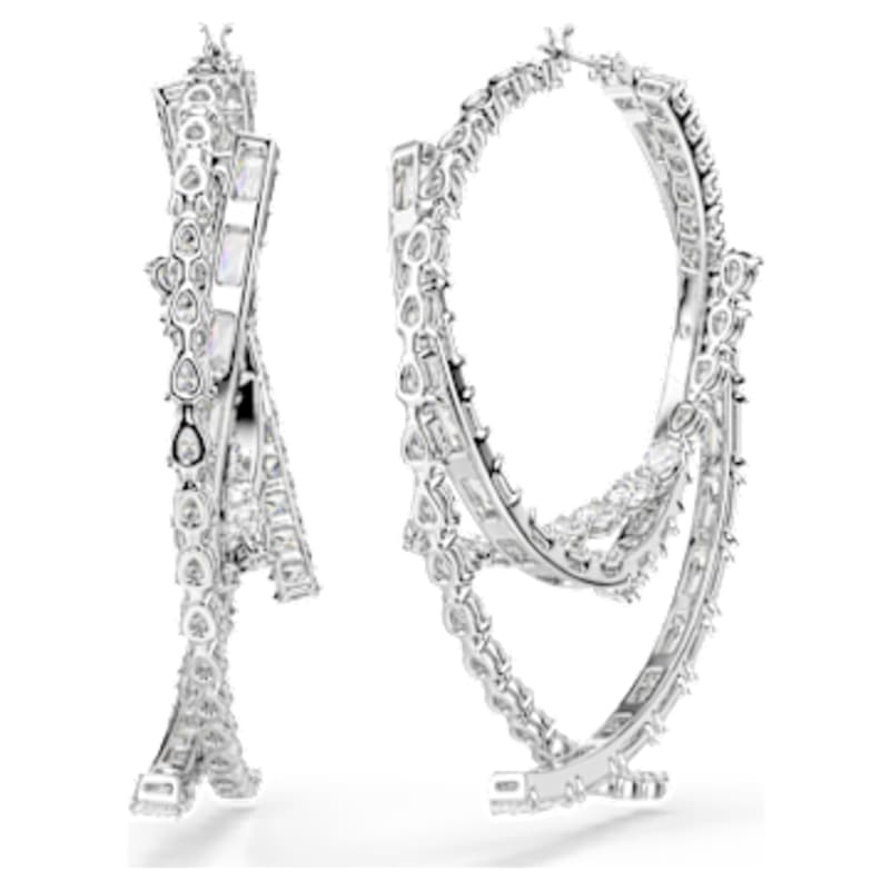 Offrez une touche d’extravagance à votre style avec ces anneaux d’oreilles exceptionnels. Chaque pièce audacieuse présente différentes tailles de Swarovski Zirconia, toutes serties dans une finition en métal rhodié raffinée. Ces boucles d’oreilles sublimeront votre allure avec éclat et s’associeront parfaitement à un bracelet-jonc ou un choker assortis pour un effet glamour irrésistible.