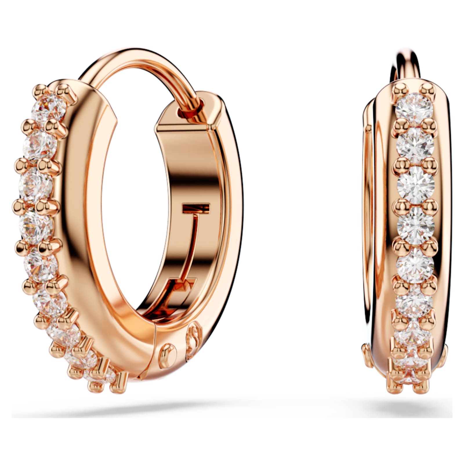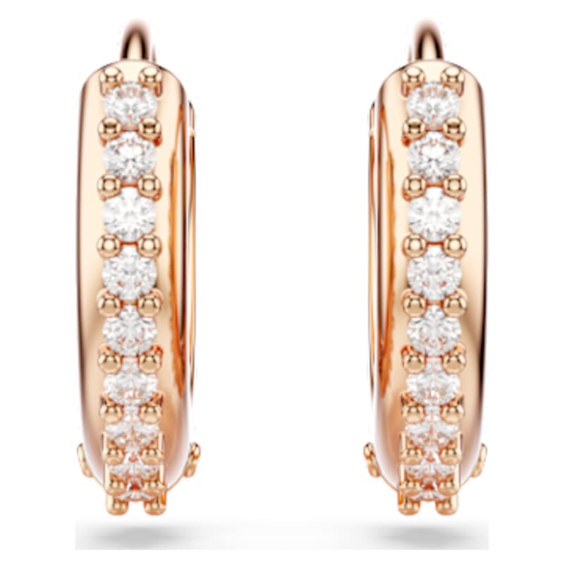 Révélez votre style avec ces mini-créoles brillantes. Ces boucles d’oreilles percées au placage de ton or rosé sont ornées de Swarovski Zirconia incolores sertis griffes sur la section extérieure. Une manière élégante d’illuminer toutes vos tenues, de journée comme de soirée.