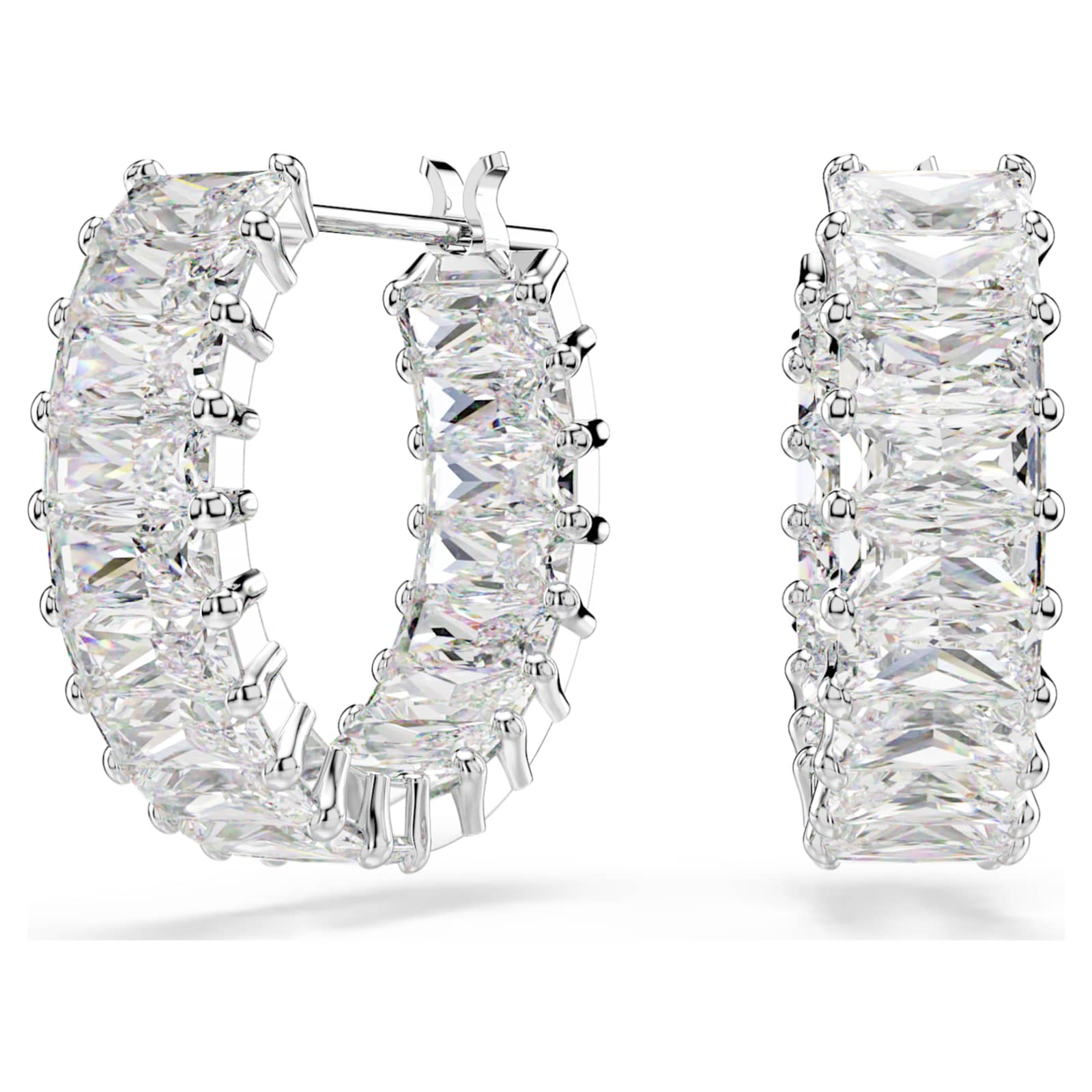 Réinventez votre style mini-créoles avec cette dose éclatante de lumière Matrix. Chaque boucle d’oreille en métal rhodié est sertie de Swarovski Zirconia taille baguette sertis griffes, ajoutant un halo d’éclat à toutes vos tenues. Portez-les avec un collier Matrix pour une brillance incomparable.