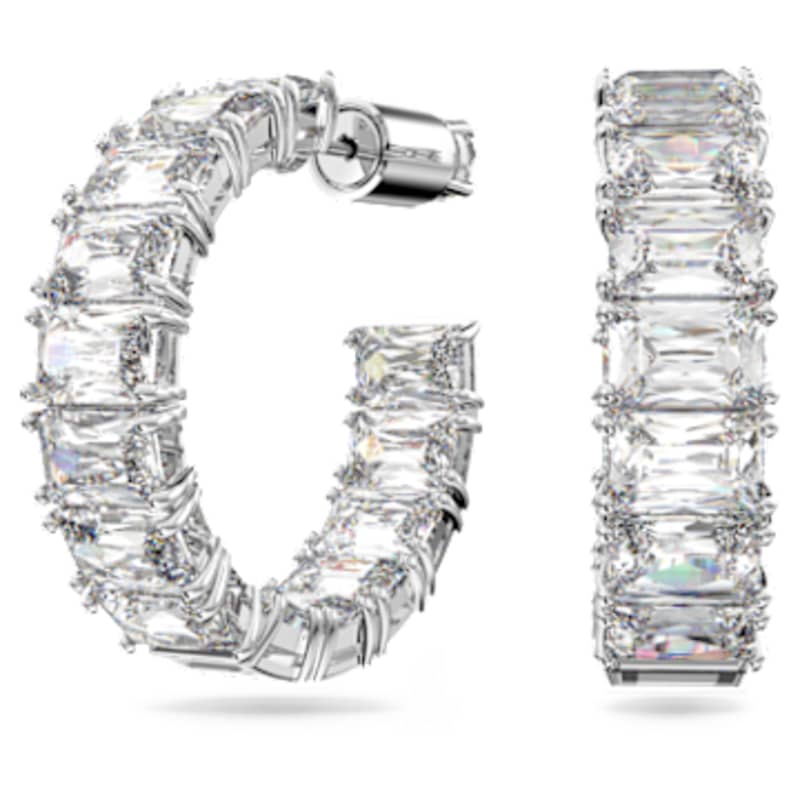 Design classique à la touche éclatante, ces créoles élégantes sont mises en valeur par un rang uniforme de pierres taille octogone serties sur une fine monture en métal rhodié. Elles apportent une touche de magie à tous vos looks – en journée ou soirée. Pensées par la directrice de création Giovanna Engelbert pour la Collection III, ces boucles d’oreilles font partie de la famille Matrix.