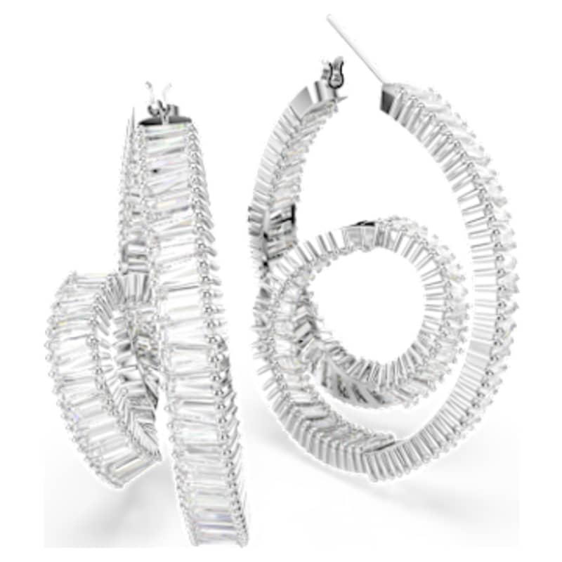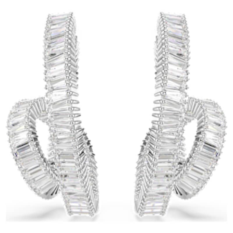 Avec leur design torsadé unique, ces boucles d’oreilles percées Matrix envoient la lumière dans toutes les directions. Chaque pièce en métal rhodié est inspirée par la forme d’un ruban et présente un tourbillon de Swarovski Zirconia taille baguette sertis griffes. Ces créoles audacieuses se prêtent à merveille à un style extravagant et s’associeront idéalement avec un pendentif Matrix assorti.