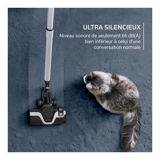 Avec un niveau sonore de seulement 66 dBA, cet aspirateur ultra silencieux est équipé d’une poignée Ergo Comfort et d’un bac à poussière XXL.