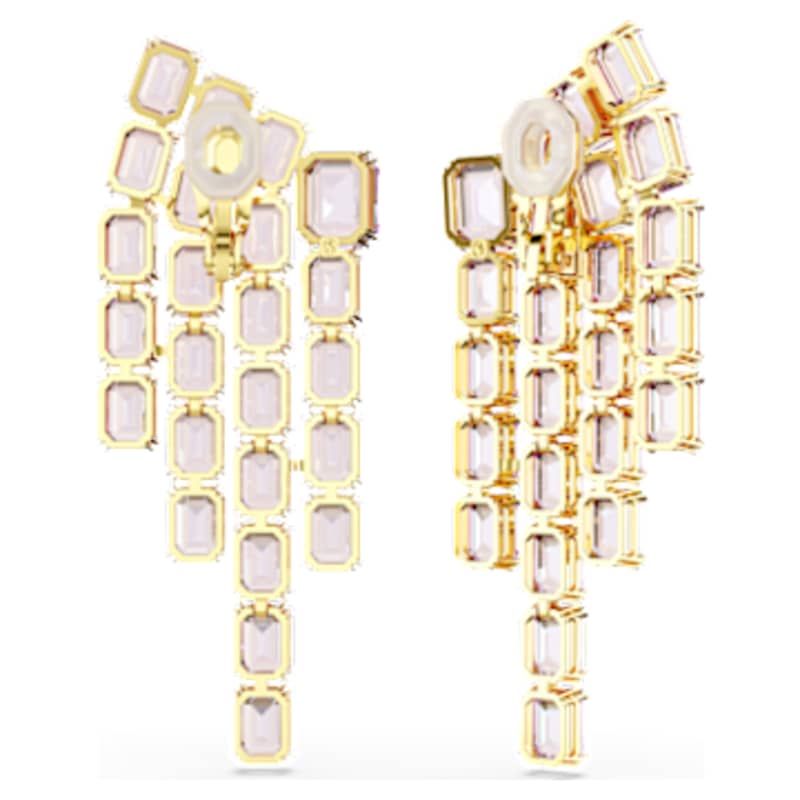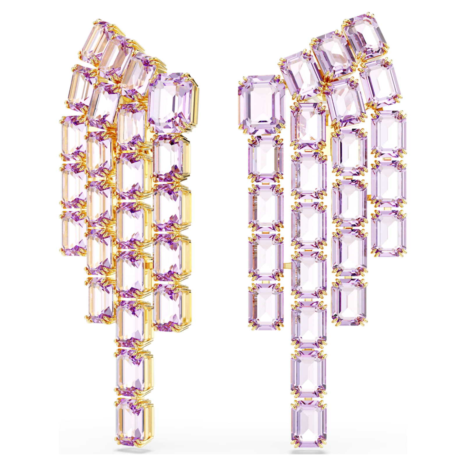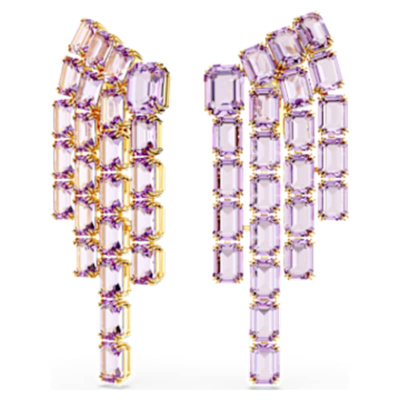 Adoptez le style chandelier chic de ces boucles d’oreilles clip intenses. Chaque pièce au placage de ton or s’anime de cascades de cristaux en cascade taille octogone dans une teinte violette. Spectaculaires et saisissantes, elles ajouteront une touche époustouflante à votre tenue de jour comme de nuit.