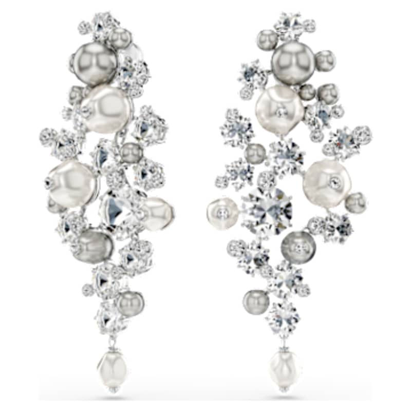 Composez le look parfait avec ces boucles d’oreilles clip d’exception. Dévoilant un niveau complexe de savoir-faire, chaque pièce en métal rhodié présente des cristaux incolores et des Crystal Pearls de Swarovski blanches et grises de différentes tailles. Grâce à leur design modulable, transformez-les à l’infini : portées longues en chandelier ou plus courtes en clip, pour toutes les occasions et toutes les envies. Associez-les au choker ou à la broche Constella pour un look véritablement éclatant.