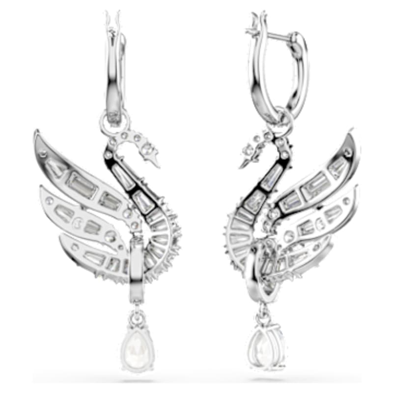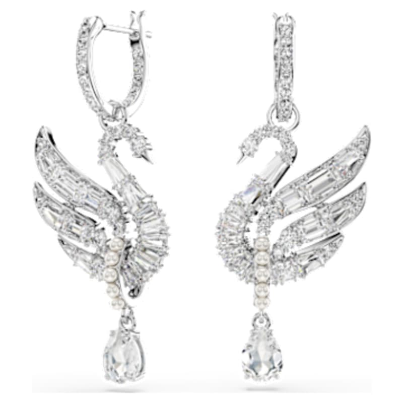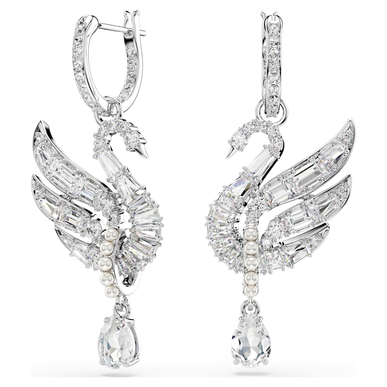 Joyeuses, élégantes et éclatantes, ces boucles d’oreilles célèbrent le cygne emblématique de Swarovski. Fixée à un petit anneau pavé, chaque pièce en métal rhodié est ornée de Swarovski Zirconia incolores et présente une taille poire unique suspendue à un anneau pavé de Crystal Pearls de Swarovski. Portez-les avec le pendentif assorti pour un look d’une sophistication absolue.