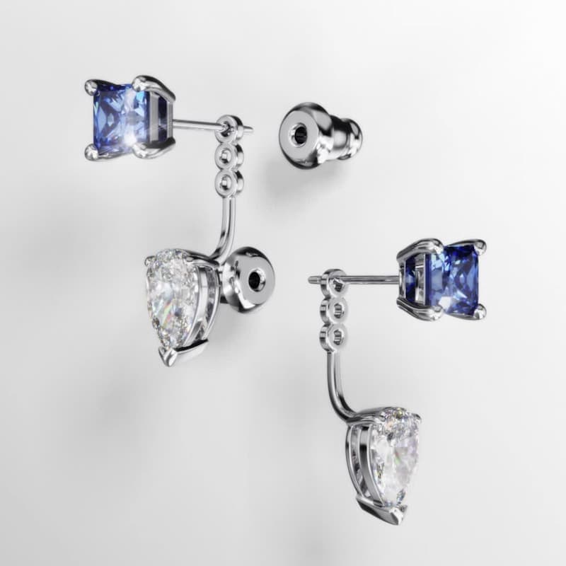 Découvrez ces boucles d’oreilles Mesmera au style aussi versatile qu’éclatant. Ce modèle pour oreilles percées en métal rhodié est incrusté de deux Swarovski Zirconia de tailles poire et carrée. Selon votre humeur et vos envies, portez ce clou d’oreille seul ou associé à son pendant amovible de taille poire. Le cadeau idéal pour injecter une dose d’élégance et de couleur à toutes vos tenues de soirée.