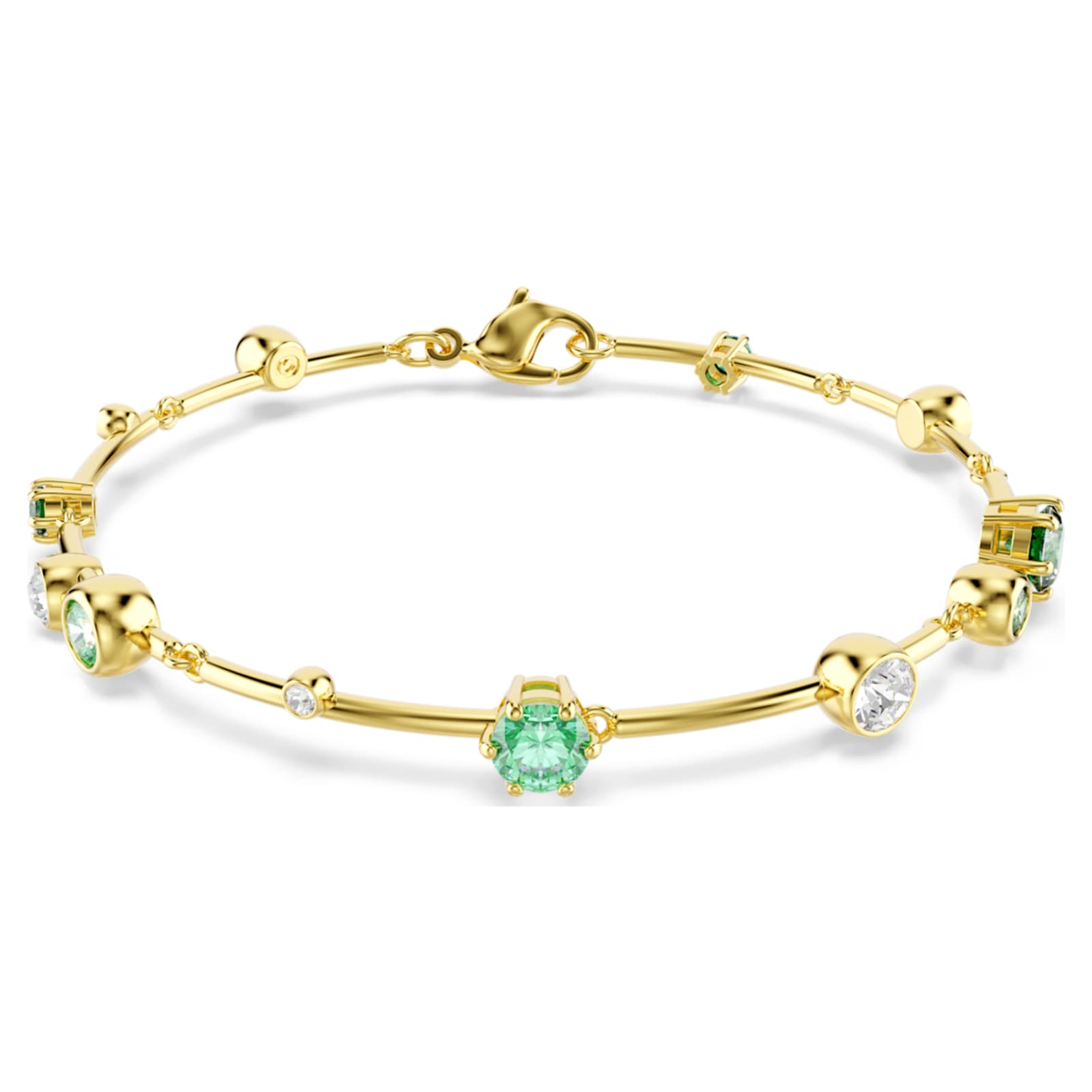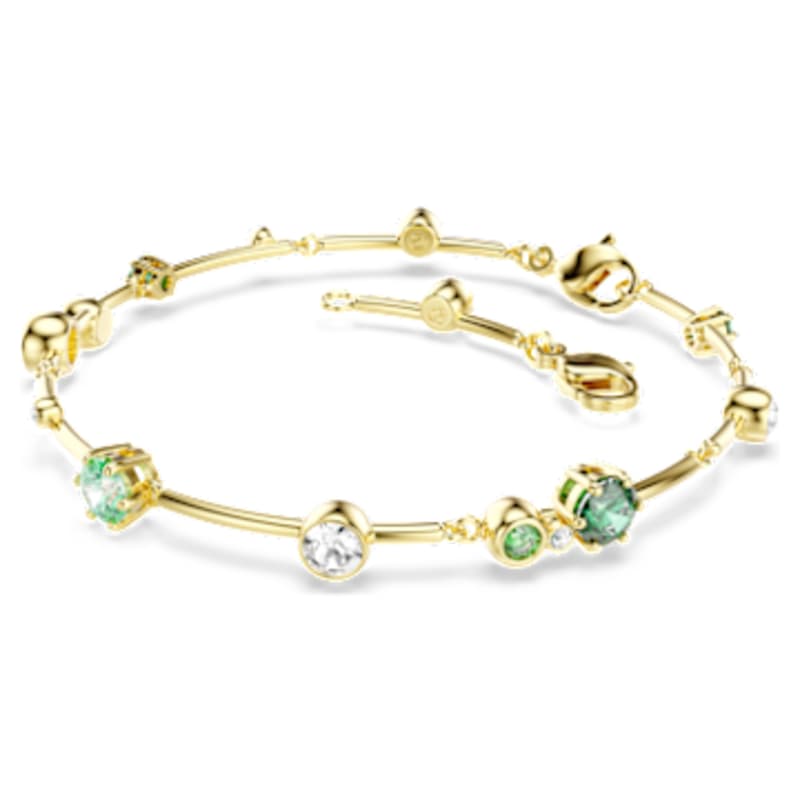 Habillez votre poignet de lumière avec ce bracelet Constella éclatant. Sa silhouette au placage de ton or présente des maillons articulés, entrecoupés de cristaux et de Swarovski Zirconia aux dimensions variées. Le bracelet affiche un mélange intense de cristaux incolores et verts, chacun présenté dans un sertissage griffes ou chaton. Outre un fermoir mousqueton, le bracelet comprend une extension supplémentaire qui permet plusieurs options polyvalentes.