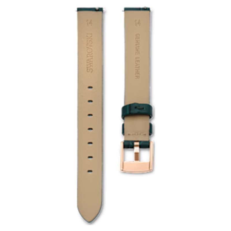 Ce bracelet vert Swarovski en cuir de veau italien apportera une touche de glamour à votre montre. Cet accessoire imitation lézard est doté d’une boucle en placage de ton or rose et d’une barrette à ressort à changement rapide qui permet un ajustement facile à votre montre Swarovski. Le bracelet mesure 14 mm de large, 18 cm de long et est compatible avec de nombreux modèles dont les montres Crystalline Aura, Crystalline Pure, Crystal Frost, Crystal Lake, et Graceful Mini.