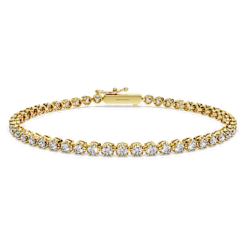 Faites tourner les têtes avec cet étincelant bracelet Eternity Tennis. Ce design en or jaune 18K comprend une rangée de diamants de synthèse, d’un total de 2,5 carats, affichant de superbes tailles rondes. Associez-le à un collier ou une bague assortie pour créer un look intemporel et harmonieux. Ce bijou certifié par l’IGI (International Gemological Institute) fait partie de la collection Eternity.