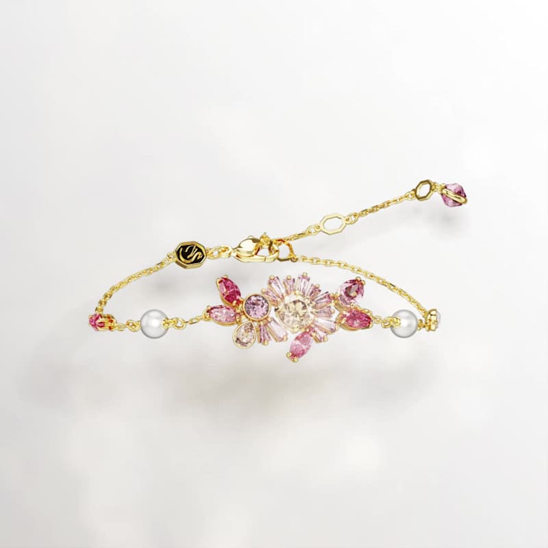 Répliquant les délicieux pétales de la fleur de cerisier japonaise, ce bracelet Gema envoûte et fascine. Ponctué d’un fermoir mousqueton, ce bijou avec placage de ton or est fixé sur une chaîne délicate parsemée de Crystal Pearls et de cristaux. Au centre, il comprend un sublime éventail de cristaux et de Swarovski Zirconia taille fantaisie aux couleurs vives, dans les tons roses et champagne. Portez ce bracelet seul pour ajouter une touche de merveille et de nature à votre style, ou associez-le à un bijou assorti de notre délicieuse famille de bijoux Gema Sakura pour un look complet et harmonieux.