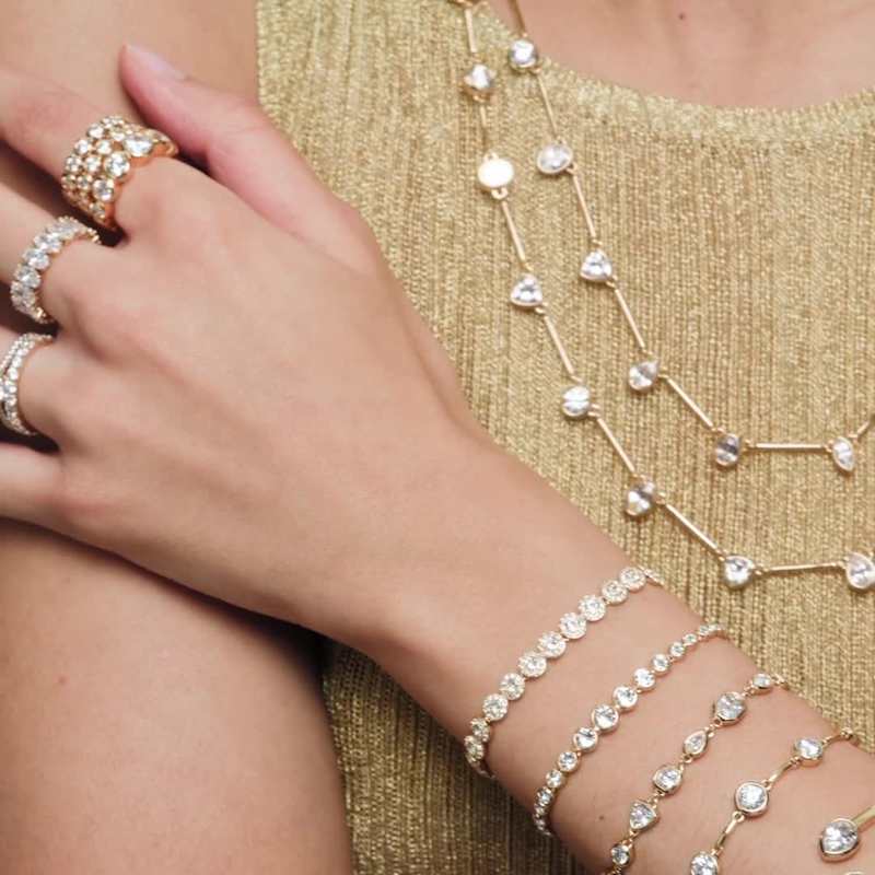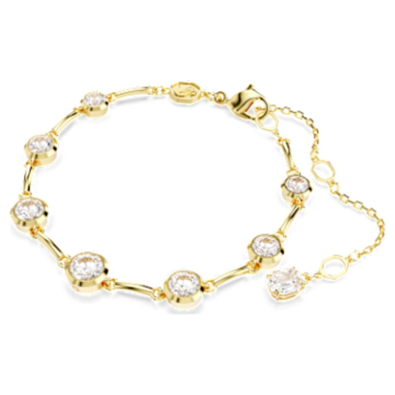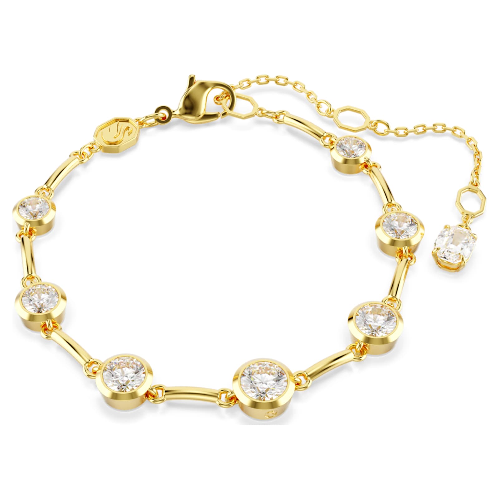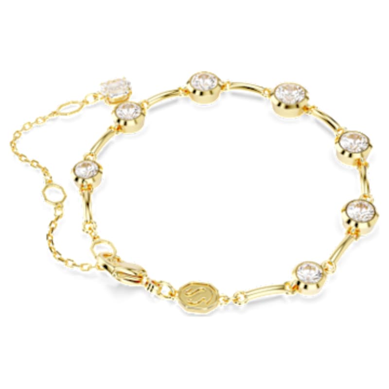 La simplicité règne en maître avec cet élégant bracelet de la famille Imber. Ce design au placage de ton or est orné de sept Swarovski Zirconia taille ronde, chacun placé dans un sertissage chaton moderne. Pour un ajustement parfait, le fermoir mousqueton est accompagné de trois positions de réglage et d’un unique Swarovski Zirconia à l’extrémité de l’extension. Portez ce bracelet avec un collier Imber assorti pour un look d’un raffinement maximal.