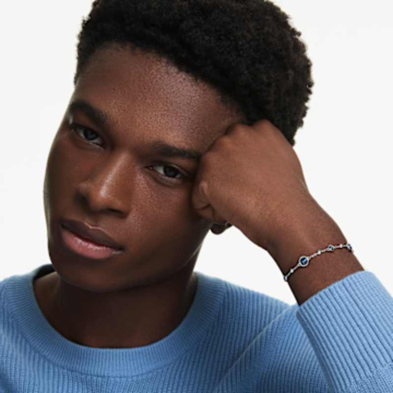 Avec son mélange dynamique de formes, ce bracelet Imber donnera à votre poignet un éclat distinctif. La chaîne en métal rhodié est dotée d’un fermoir mousqueton et d’une rangée de gouttelettes en métal entrecoupées de cristaux bleus ronds dans un sertissage chaton raffiné. Ce bijou comprend également une extension supplémentaire, lui permettant de s’adapter à tous les poignets. Parfait pour ajouter une touche de douceur et de grâce à une tenue.