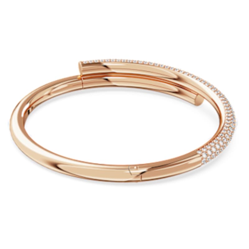 Entourant élégamment le poignet, ce bracelet-jonc croisé offre promet un impact maximal. Son design tubulaire mêle magnifiquement style classique et touche contemporaine et présente une bande au placage de ton or rosé, dont la moitié est ornée d’un pavé incolore. Ce bracelet dispose d’une fermeture magnétique dissimulée pour une finition impeccable. Un bijou intemporel qui élèvera instantanément votre style au quotidien.