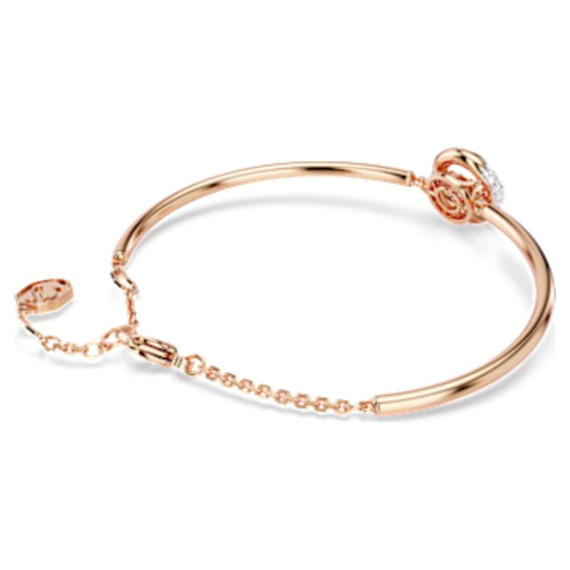 Captez la lumière avec ce superbe bracelet-jonc Dextera. Ce design au placage de ton or rosé avec fermoir mousqueton affiche un demi-cercle central incrusté d’un pavé de cristaux incolores et d’un Swarovski Zirconia dansant au milieu. Portez-le avec un pendentif ou des boucles d’oreilles assorties pour irradier de joie.