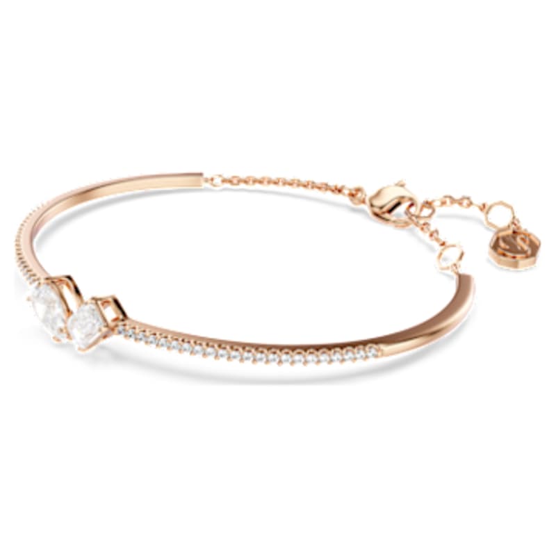 Enveloppez votre poignet d’une élégance lumineuse avec ce bracelet-jonc de la collection Mesmera. Son placage or rose met en valeur un pavé de cristaux sur les côtés, accompagné de deux Swarovski Zirconia taille poire et octogone, disposés en gradins. Un duo éclatant qui capte la lumière sous tous les angles. Avec son extension suspendue, ce bracelet est la pièce raffinée idéale pour sublimer vos grandes occasions.