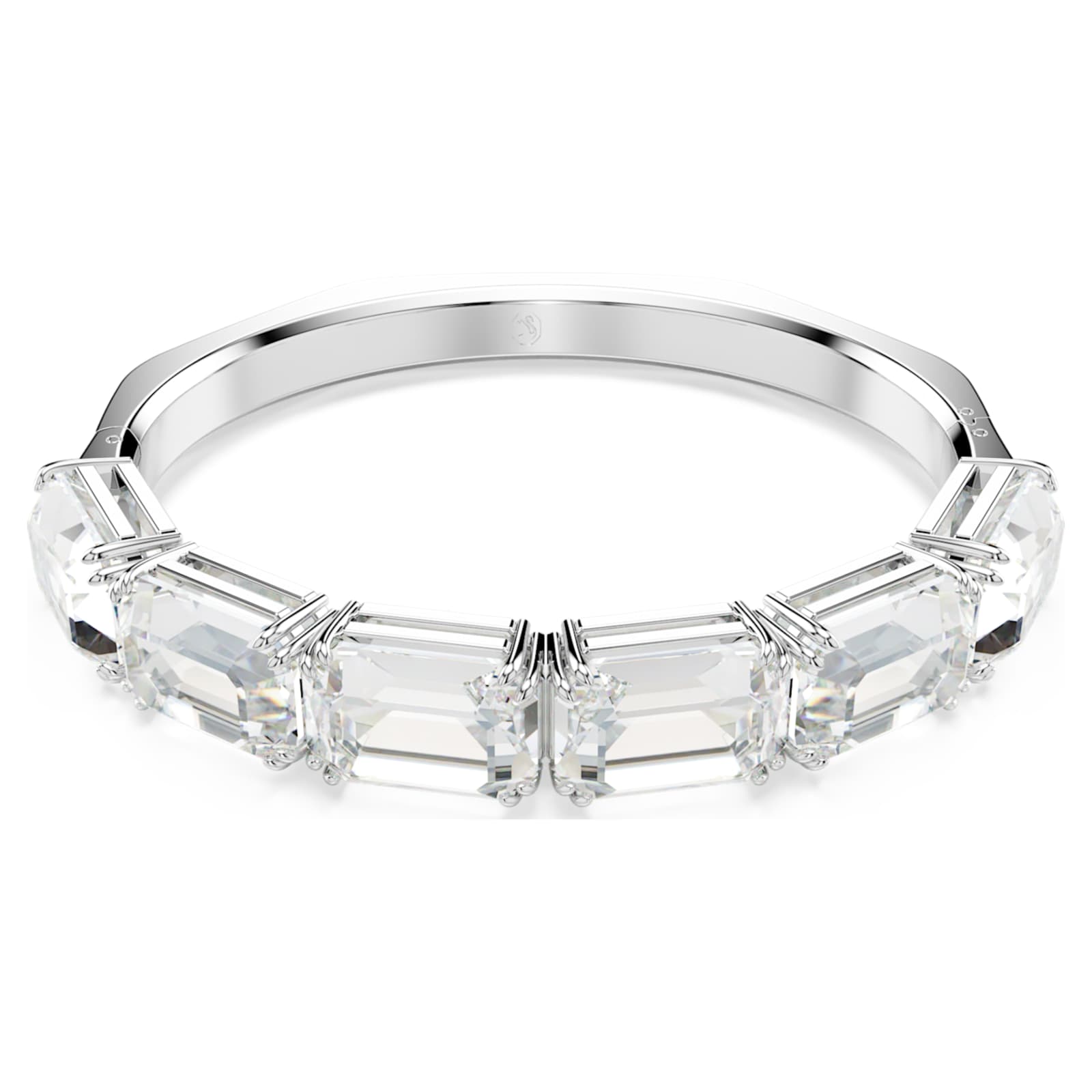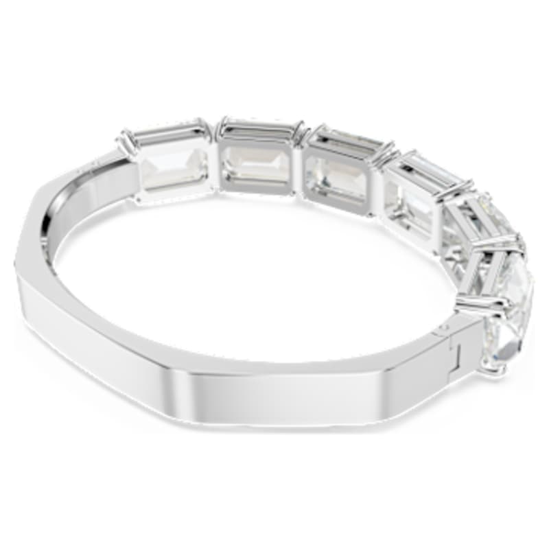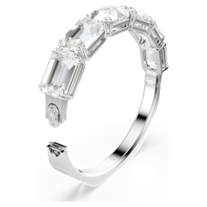 La maîtrise de la lumière de Swarovski se dévoile plus grande que jamais avec ce bracelet-jonc rayonnant Millenia. Autour du poignet, sa bande en métal rhodié présente une sublime forme octogonale sertie d’une série de brillants cristaux incolores taille octogone. La pièce parfaite pour jouer la carte glamour, de nuit comme de jour.