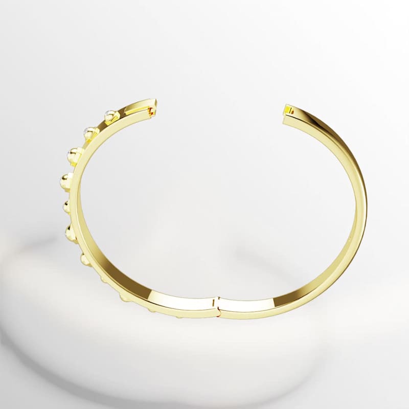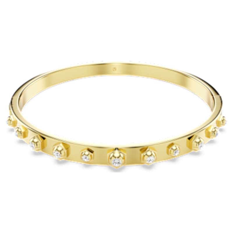 Ce bracelet-jonc Numina associe beauté étincelante et style industriel chic. Cette pièce métallique, conçue avec un placage de ton or, est ornée de cristaux ronds incolores aux dimensions variées. Un design distinctif et audacieux, idéal de jour comme de nuit.