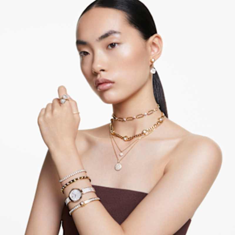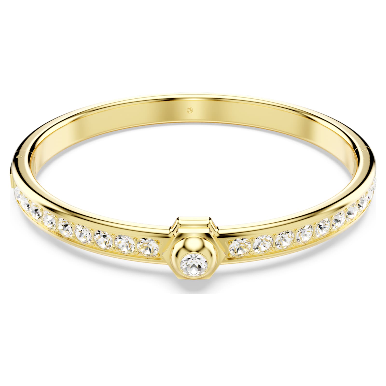 Ce bracelet-jonc Numina dévoile un style étincelant qui joue savamment avec les codes de l’industriel. Cette pièce superbement conçue en placage de ton or dévoile un ornement de cristaux ronds incolores et un clou central captivant. Portez-la de jour comme de nuit pour donner à votre look une touche audacieuse et contemporaine.