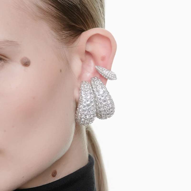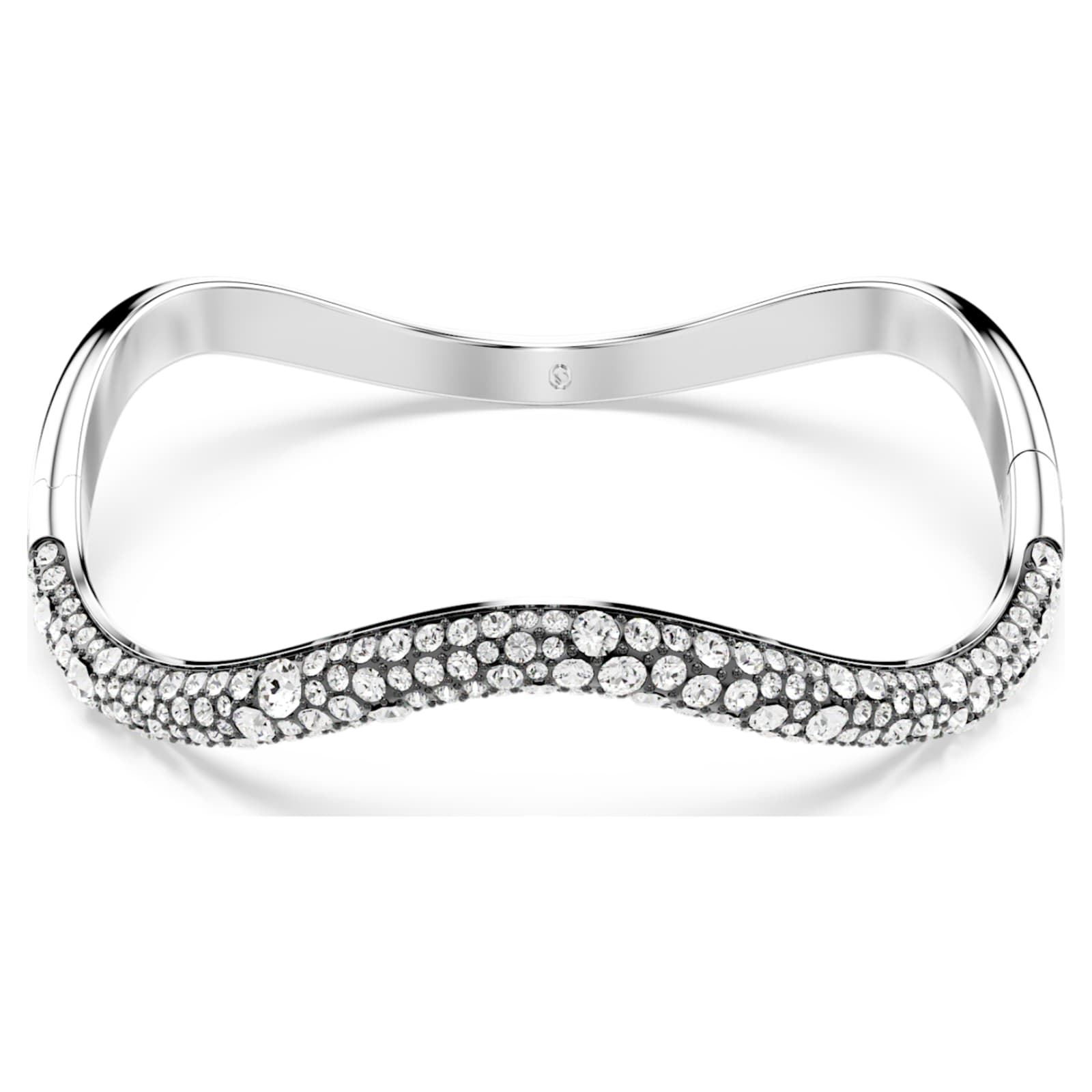 Dynamique et élégant, ce bracelet-jonc Sublima fait magnifiquement écho aux vagues ondoyantes de l’océan Sa forme fluide est ornée d’un pavé de cristaux incolores sertis dans une base au placage ruthénium, accompagnée de métal rhodié à l’arrière. Le motif Meteora constitué de cristaux aux dimensions variées offre à cette pièce unique un effet hautement étincelant. Un hommage sublime aux bords de mer qui insufflera une touche d’élégance et de sérénité de à tous vos looks.