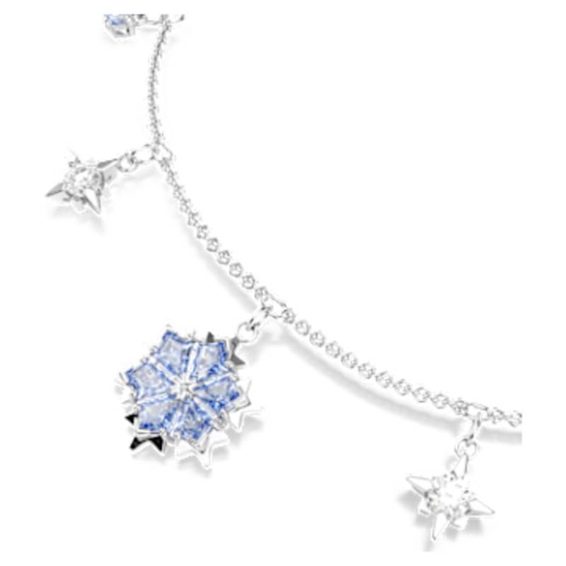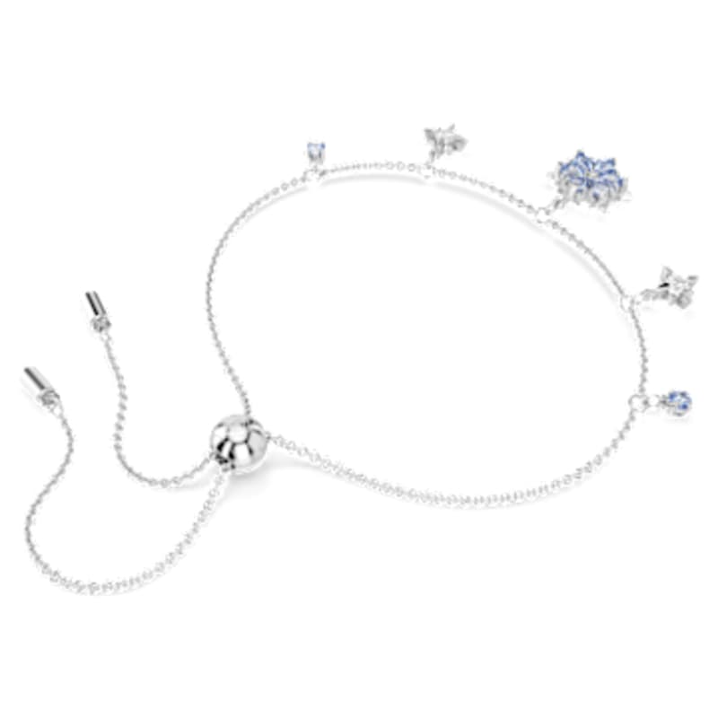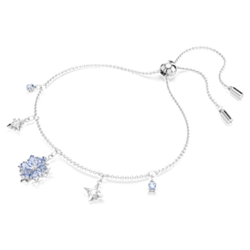Ce bracelet réinvente l’emblématique flocon Swarovski avec une brillance cristalline. Cinq motifs hivernaux en Swarovski Zirconia bleus scintillent sur une chaîne en métal rhodié, délicatement terminée par un fermoir coulissant ajustable. Un bijou raffiné à s’offrir ou à offrir, parfait pour illuminer la saison.