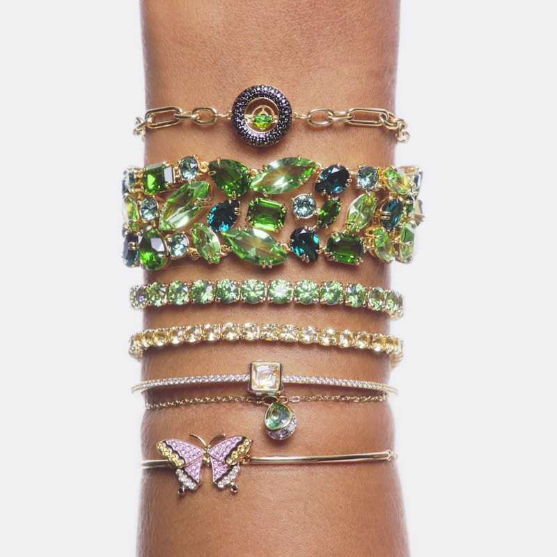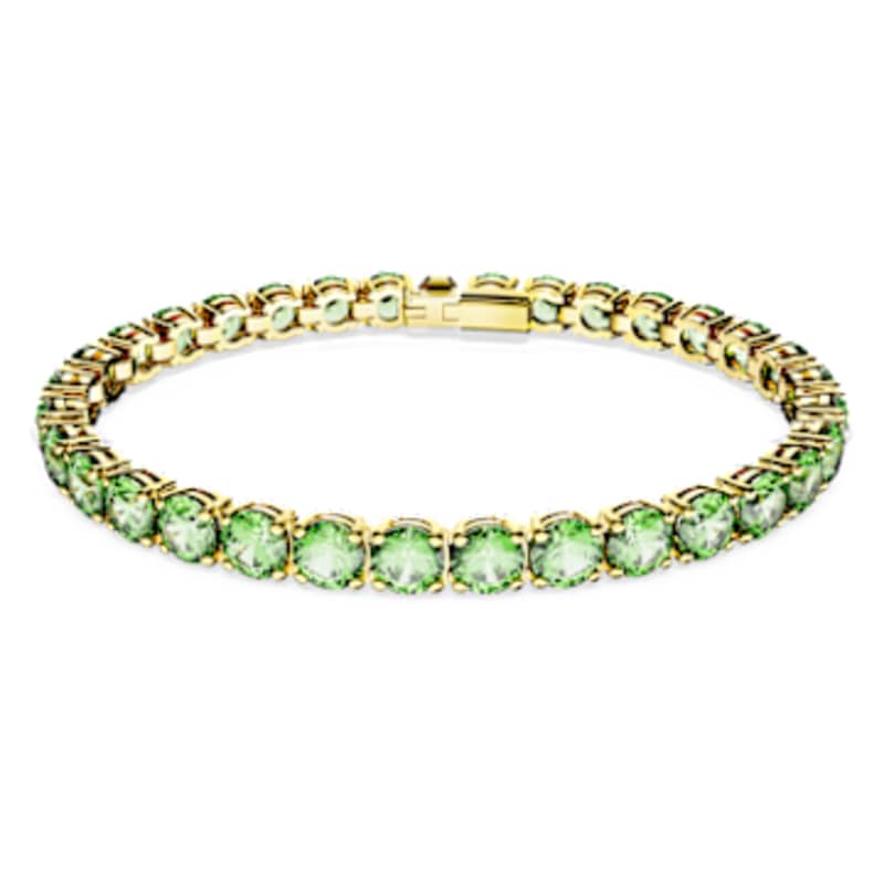 Empreint du style fluide et contemporain de la famille Matrix Tennis, ce bracelet habillera votre poignet de couleur et de lumière. Avec ses pierres rondes vertes montées sur un placage de ton doré, il peut facilement se porter seul comme pièce star de votre style ou s’associer à d’autres bijoux pour un look spectaculaire.