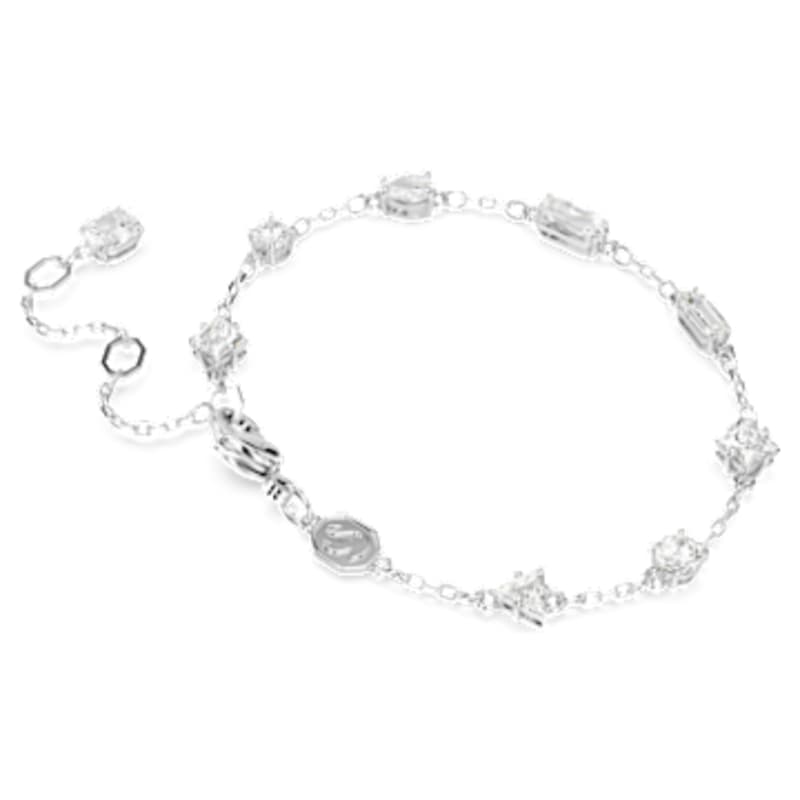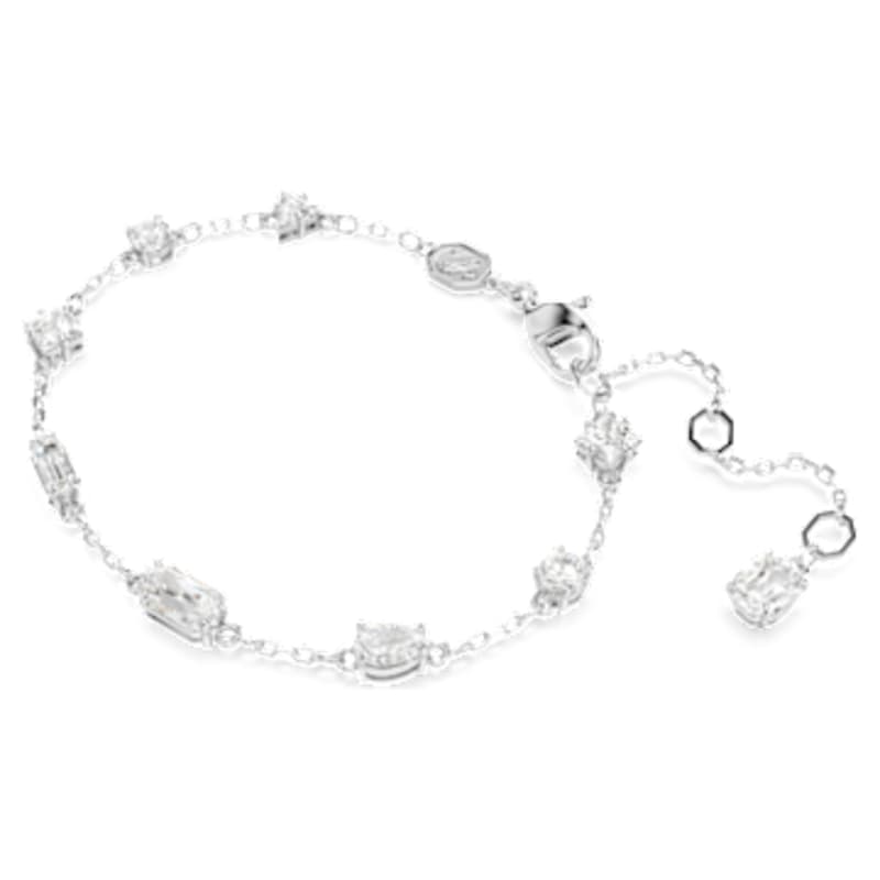 Ce bracelet éblouissant illustre à la perfection le style à la fois élégant et surprenant de la collection Mesmera. Cette pièce raffinée se compose d’une chaîne délicate en métal rhodié, parsemée de superbes Swarovski Zirconia de différentes tailles. Une pierre vient également orner l’extrémité de l’extension. Cette création s’associera à merveille à son collier assorti pour un cadeau des plus raffinés.