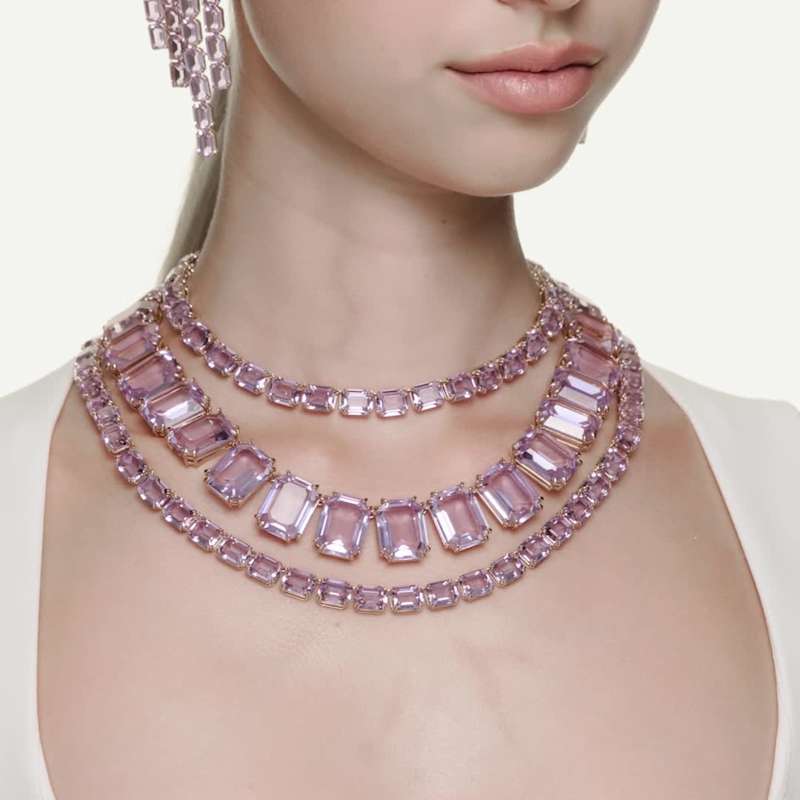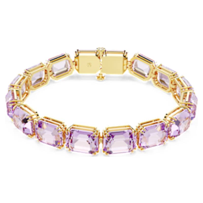 Rayonnant de lumière et de couleurs vives, ce bracelet Millenia éclatant attire tous les regards. Ce design au placage de ton or s’anime d’une décoration majestueuse de cristaux taille octogone dans une teinte violette. Une pure expression de joie qui s’associera facilement à un choker ou un collier assorti.