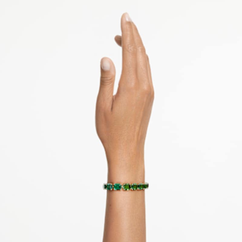 Ajoutez une touche d’audace à toutes vos tenues avec ce fascinant bracelet Millenia qui rayonnent d’une multitude de vibrantes nuances vertes. Son design en placage de ton or présente une rangée entièrement articulée de cristaux octogonaux, chaque pierre révélant la maîtrise du sertissage doubles griffes de Swarovski et les couleurs riches et intenses prisées par la famille Millenia. L apièce idéale à offrir ou pour se faire plaisir.
