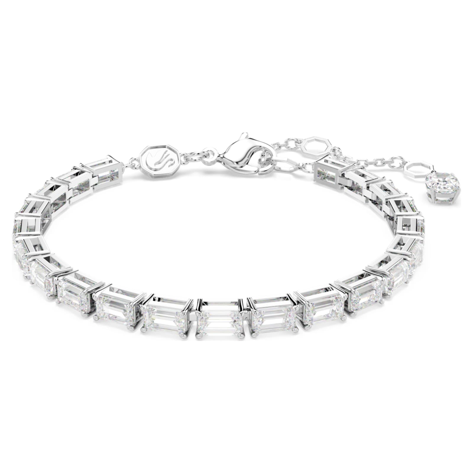 Ce bracelet Matrix délicat réinvente un classique intemporel. Doté d’un fermoir mousqueton, ce design en métal rhodié présente une rangée entière de Swarovski Zirconia taille octogone, créant un look lumineux à la fois simple et captivant. Portez-le comme un pur symbole d’élégance en toute occasion, de jour comme de nuit.