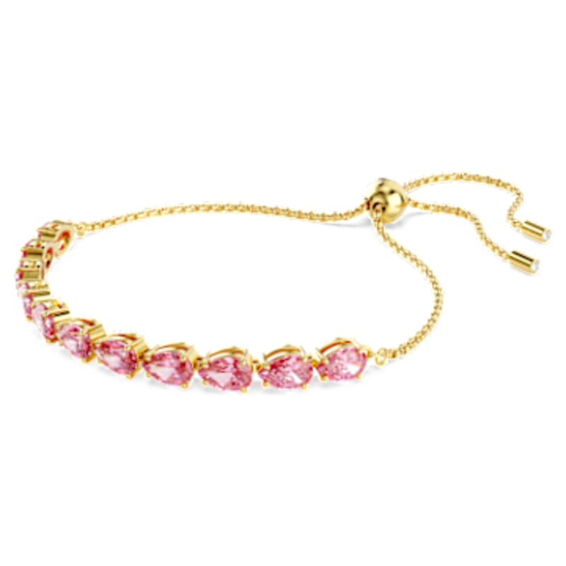 Le talent créatif de Swarovski rayonne à travers ce bracelet lumineux et malicieux. Doté d’un fermoir coulissant, ce design au placage de ton or est orné d’une rangée de Swarovski Zirconia taille poire, d’une couleur rose romantique, chacun serti griffes. Idéal à superposer avec d’autres bracelets pour exprimer votre propre style.
