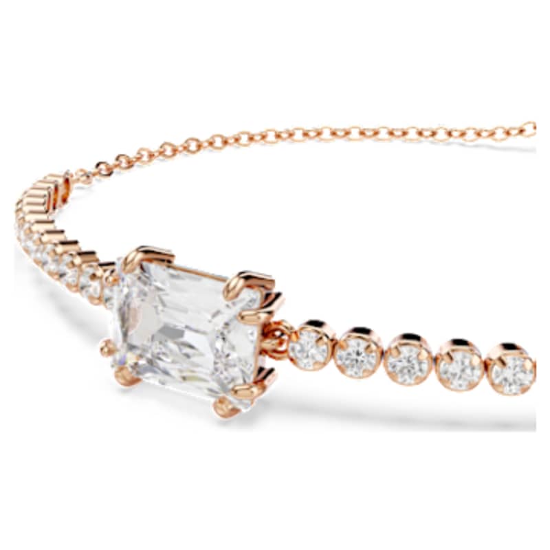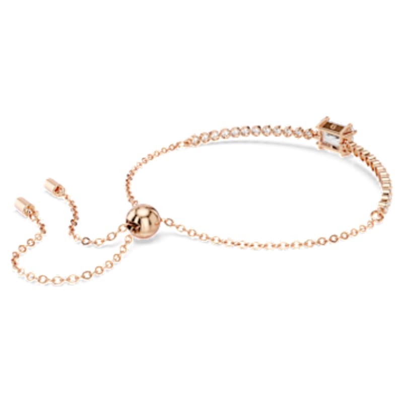 Ce bracelet Tennis classique ajoute une touche d’éclat à tous les looks. Muni d’un fermoir coulissant pour un ajustement parfait, ce design au placage de ton or rosé présente une rangée uniforme de Swarovski Zirconia accentuée d’un Swarovski Zirconia taille baguette en son centre. Une torsade intense pour un style intemporel à porter encore et encore.