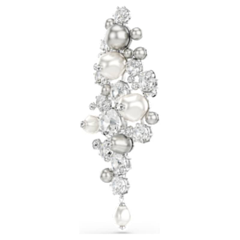 Adoptez le côté cosmique de votre style avec cette broche étoilée en métal rhodié. Sa silhouette spectaculaire révèle une grappe de cristaux incolores et de Crystal Pearls Swarovski blanches et grises, minutieusement assemblés dans un style à la fois complexe et harmonieux. Portez cette broche avec les boucles d’oreilles ou le choker assortis pour maximiser son effet stellaire.