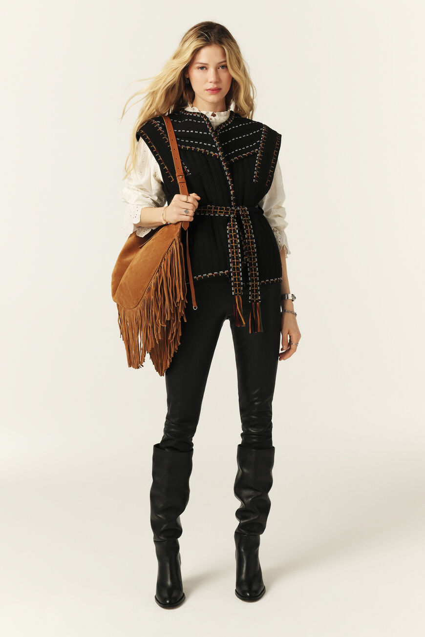 – Ceinture brodée à franges avec passants amovibles