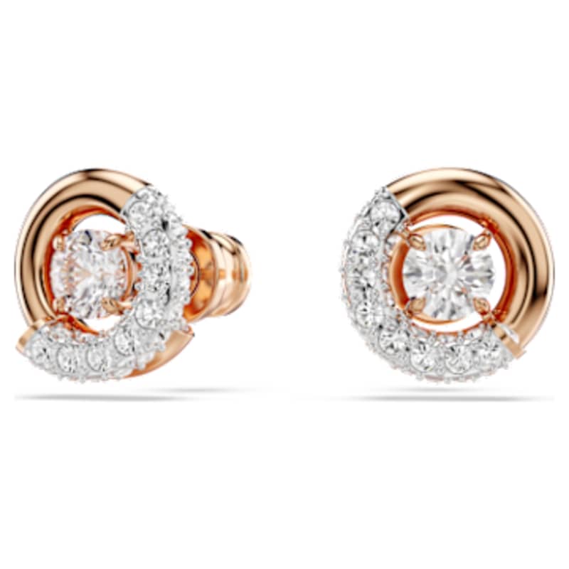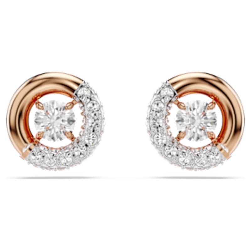 Pensées pour capter la lumière, ces boucles d’oreilles Dextera sont un exemple éblouissant du savoir-faire de Swarovski. Chaque clou au placage de ton or rosé affiche un demi-cercle central incrusté d’un pavé de cristaux incolores et d’un Swarovski Zirconia dansant en son centre. Portez-les avec un pendentif assorti pour irradier de joie.