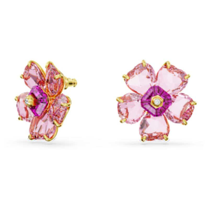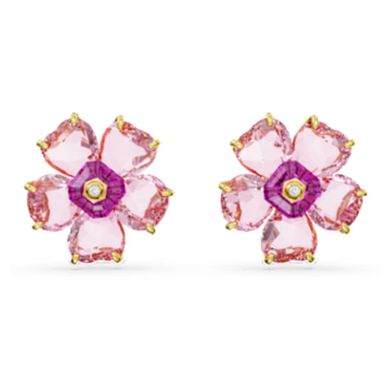 Inspirées par la beauté des fleurs et les merveilles de la nature, ces boucles d’oreilles percées n’attendent que d’être cueillies. Monté sur un placage de ton or, ce modèle est composé de cristaux roses disposés en pétales autour d’une pierre d’une teinte plus profonde. Un modèle captivant pour mettre en lumière la magie de la nature.