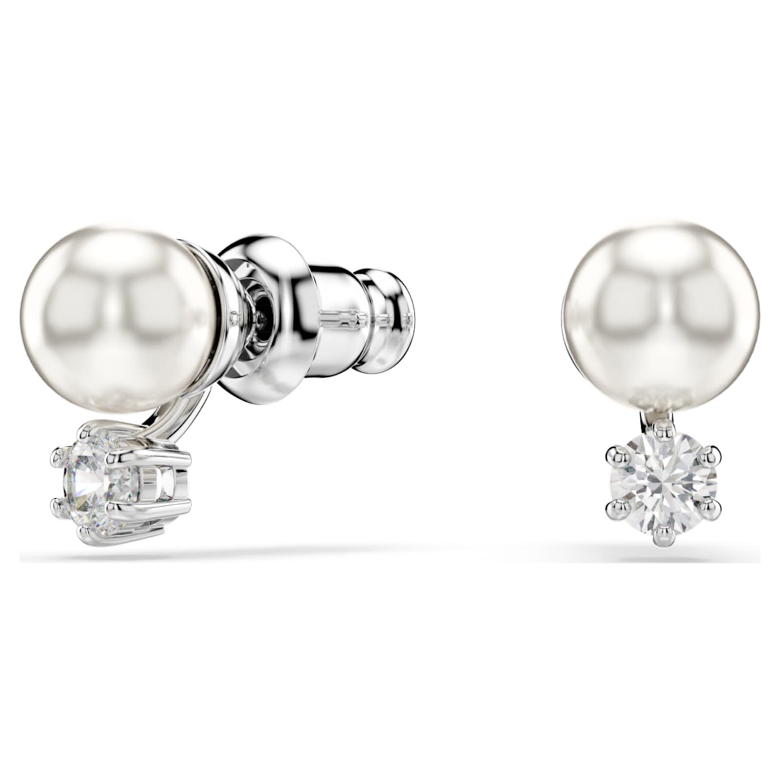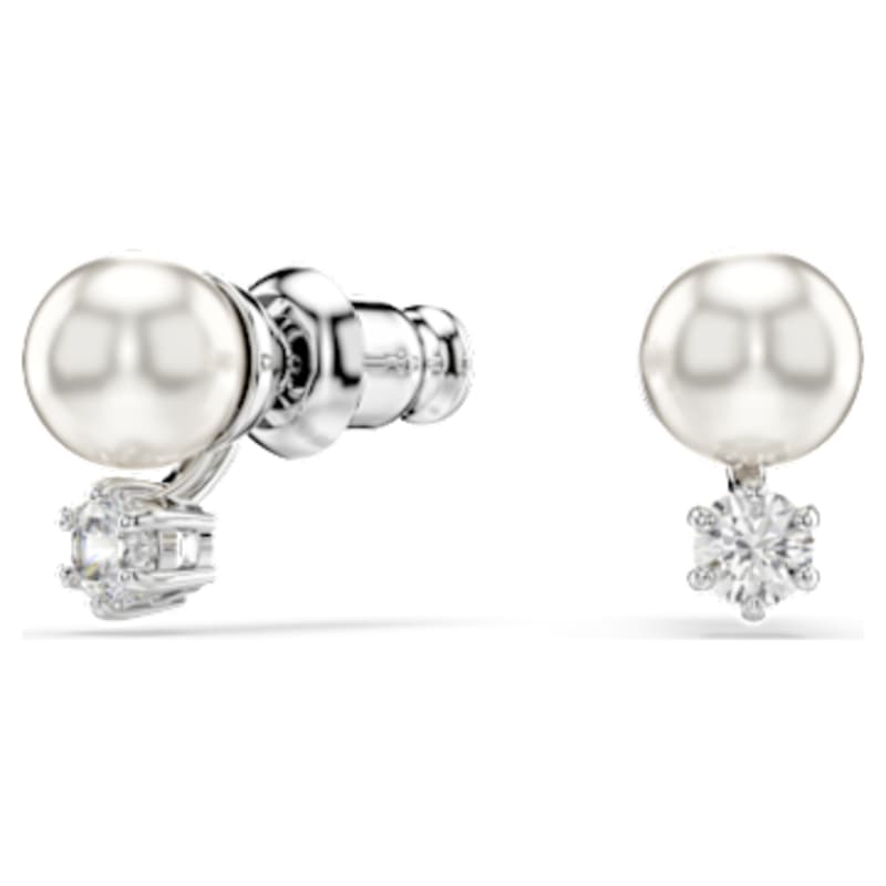 Ces superbes clous d’oreilles percées sont une interprétation inédite de la boucle d’oreille à perle classique. Luxueuses et lumineuses, chaque pièce en métal rhodié présente une Crystal Pearl de Swarovski blanche et un Swarovski Zirconia taille ronde. Portez-les avec un pendentif Matrix assorti pour plus d’éclat.