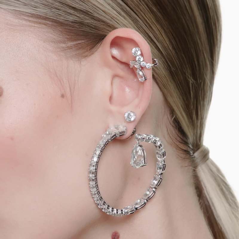 Étincelez tout au long de la journée avec cette délicate paire de clous d’oreilles en métal rhodié. Cadeau parfait, les clous scintillent avec une élégance intemporelle. Coordonnez-les avec d’autres bijoux Swarovski pour exprimer votre style unique.