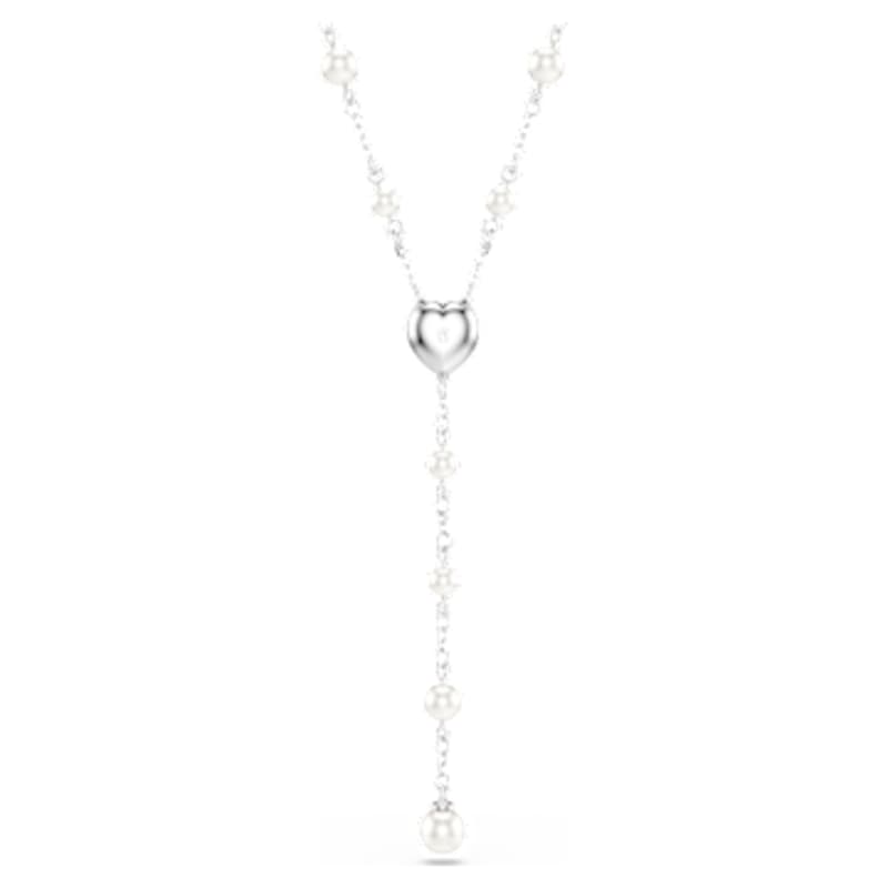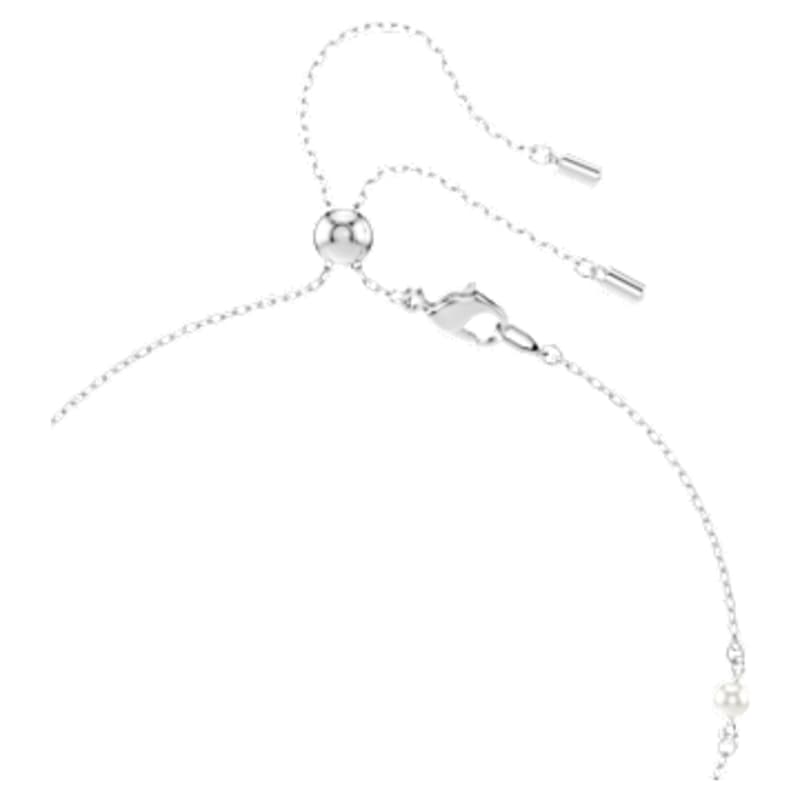 Ce collier en T, réalisé avec finesse et beauté intemporelle, est emblématique de la joyeuse extravagance de Swarovski. Ce design en métal rhodié présente une chaîne délicate ornée de Crystal Pearls de Swarovski. Un motif en forme de cœur disposé au centre est entouré d’un pavé étincelant, tandis que la rangée suspendue apporte une touche finale de sophistication. Associez ce collier à d’autres bijoux assortis pour créer vos propres combinaisons éclatantes.