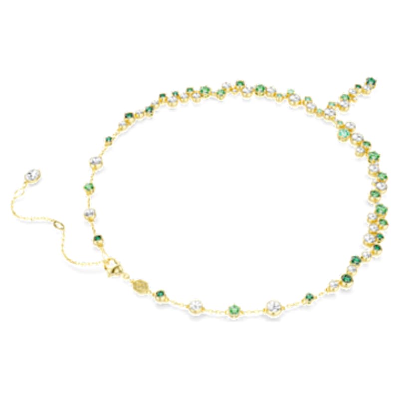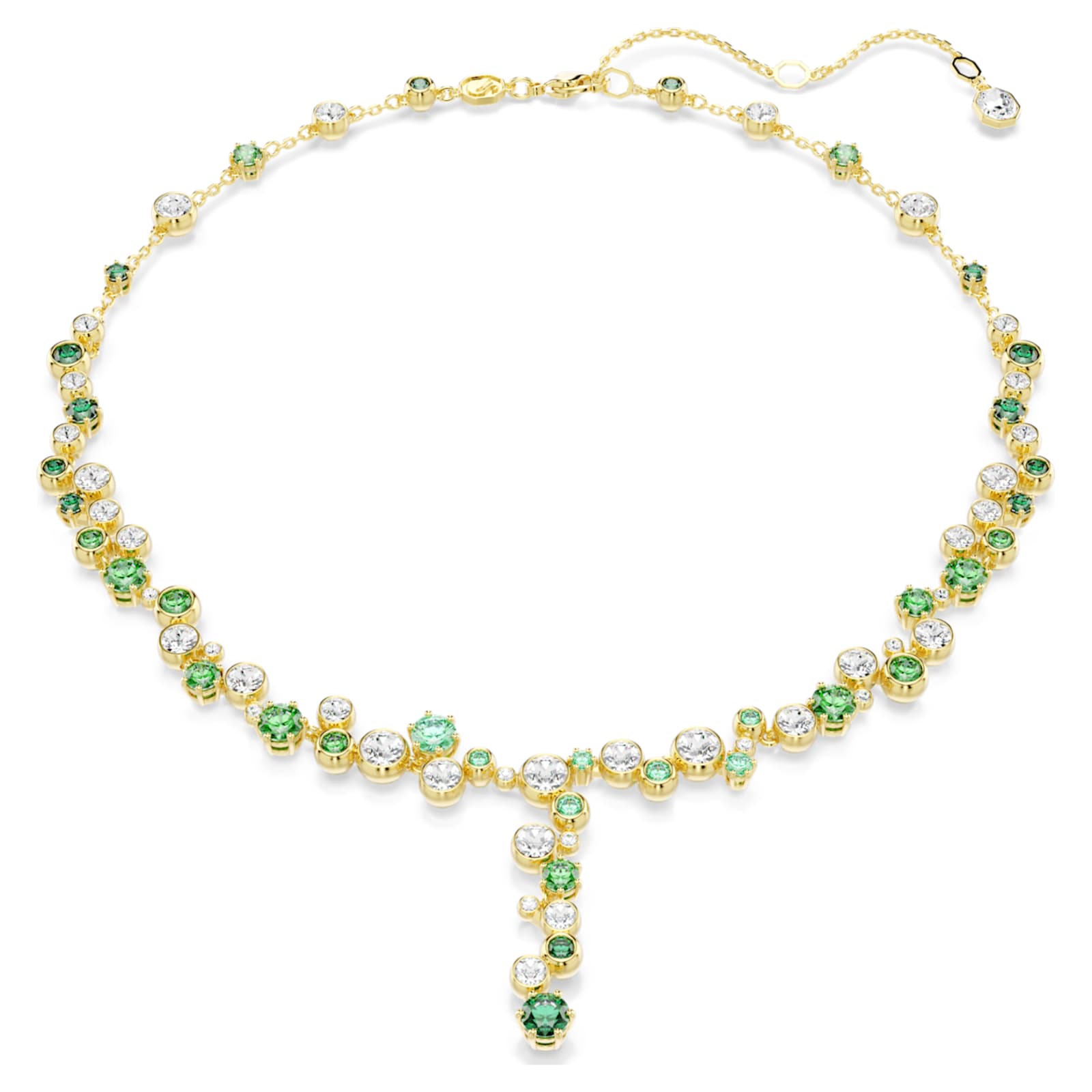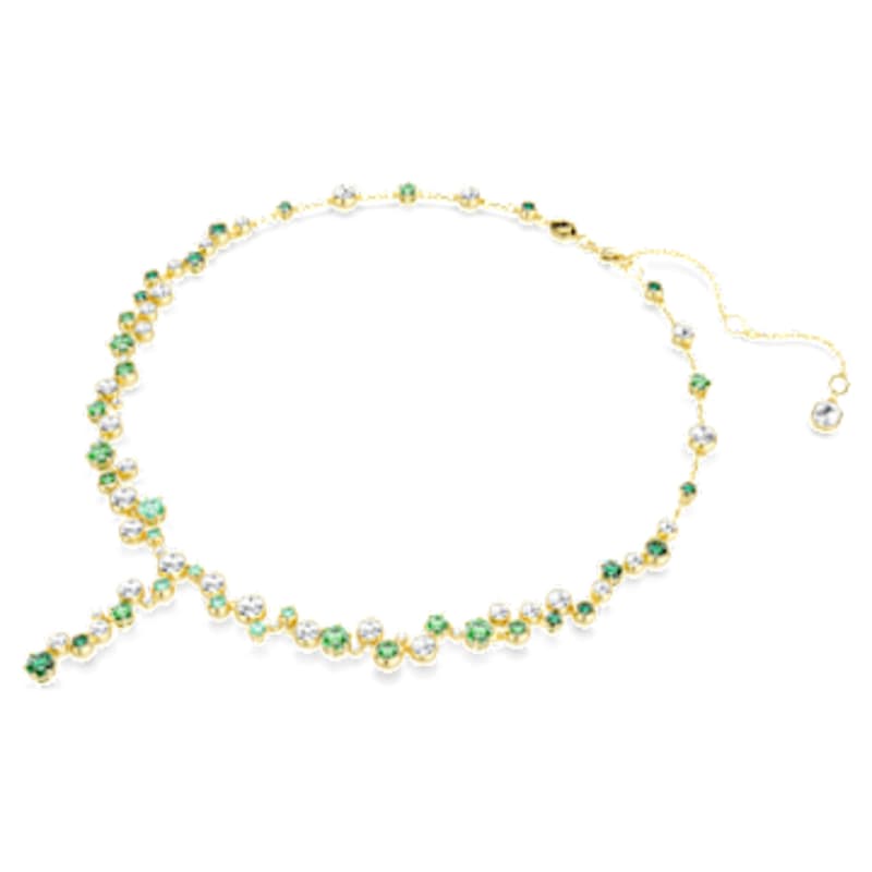 Ce collier étoilé de la famille Constella est aussi complexe que fascinant. Sa silhouette en T met en valeur un ornement intégral de cristaux et Swarovski Zirconia, mariant des nuances de vert hypnotiques à des tons incolores qui s’accordent parfaitement au placage de ton or. Portez-le avec d’autres pièces Constella pour encore plus de joie et d’intensité.