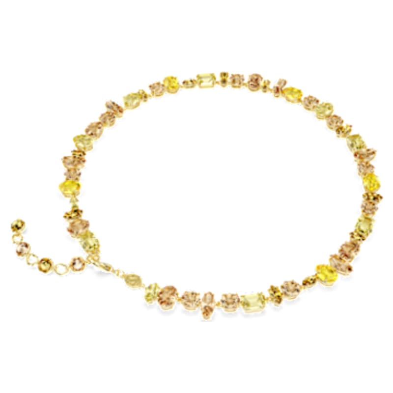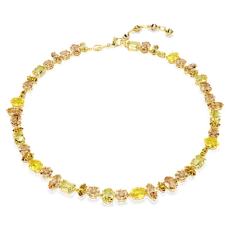 Augmentez l’intensité avec ce collier lumineux au placage de ton or. Idéal au quotidien ou pour les grandes occasions, ce design intégral est orné de cristaux sertis griffes dans un mélange spectaculaire de tailles et de tons jaunes et ambrés. Ce collier, qui incarne les formations inattendues et la beauté intense de Gema, brillera de mille feux si vous le portez avec d’autres bijoux assortis de la même famille.