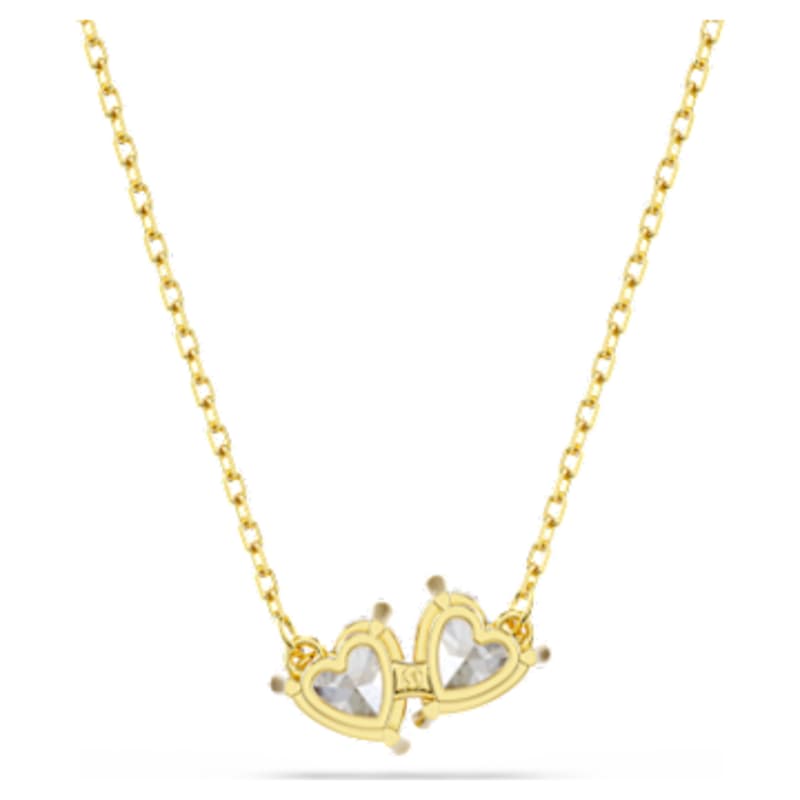 Ce collier Swarovski issu de la famille Mesmera offre un design classique avec une brillante touche de modernité. Orné de beaux Swarovski Zirconia en forme de cœurs jumeaux, son design est sublimé par un placage de ton or et l’élégance discrète de sa chaîne. Ce charmant collier est le cadeau idéal pour la personne que vous aimez.