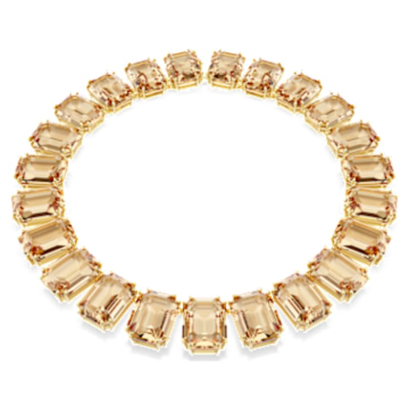 Adoptez un éclat joyeux e touche de couleur joyeuse avec ce collier Millenia aux teintes vives. Ce collier au placage de ton or est sublimé par un éventail dynamique de cristaux taille octogone couleur caramel. Pour les jours où vous avez envie de rayonner, ce collier est la réponse idéale.