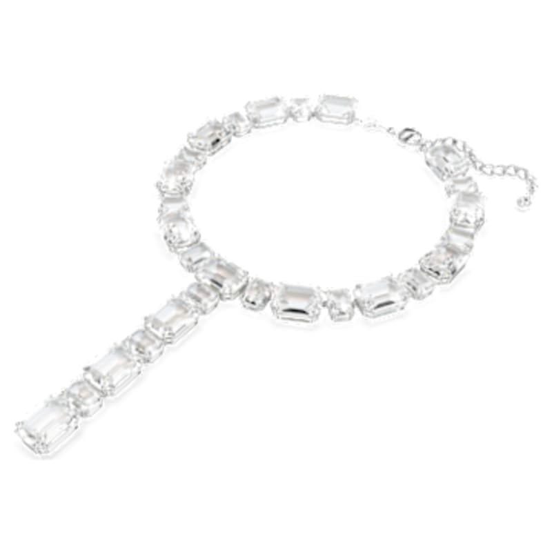 Irradiez l’émerveillement avec ce collier en T de la famille Millenia. Le design en métal rhodié présente une rangée de cristaux incolores, de formes et de dimensions variées, tout autour du collier, avec une longue rangée à l’avant. C’est une superbe façon d’élever la lumière et la joie de votre style. Associez ce collier à des boucles d’oreilles Millenia assorties pour compléter ce look puissant.