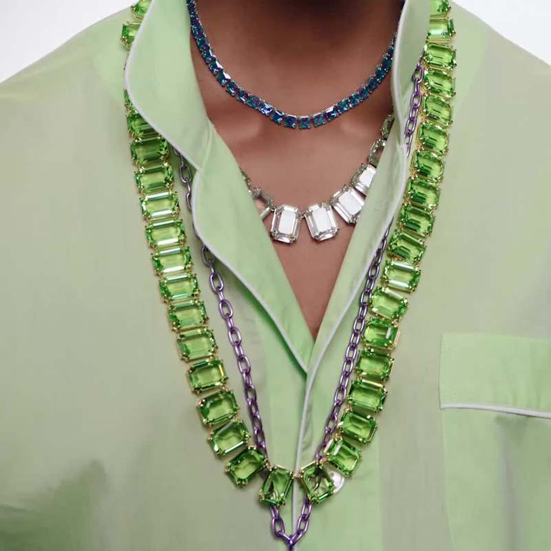 Découvrez le nouvel essentiel de votre garde-robe avec ce collier unique, orné d’une rangée de Cristaux Swarovski ReCreated® verts sertis griffes sur un placage de ton or. Doté d’un fermoir invisible pour un effet des plus harmonieux, ce collier apportera instantanément la touche finale d’éclat qu’il manquait à votre style de tous les jours.